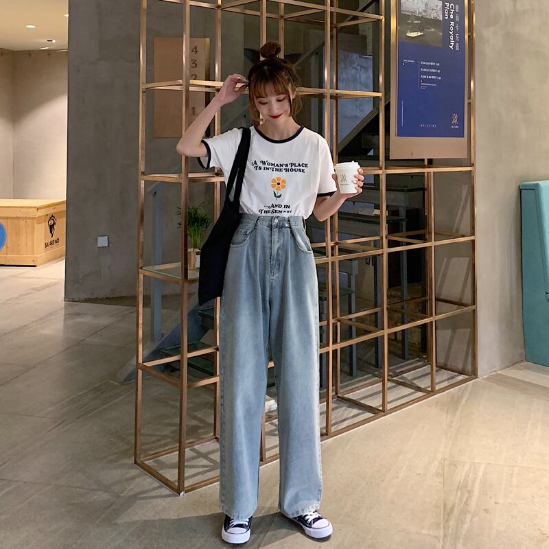 パンツ レディース夏服韓国ファッションルーズウェストワイドレッグジーンズ 夏物 アジャスタブル ワイドパンツ スタイル ウエスト CHIL23373389039