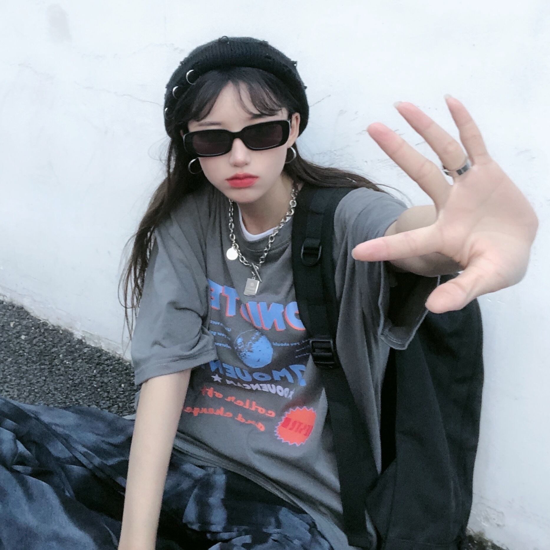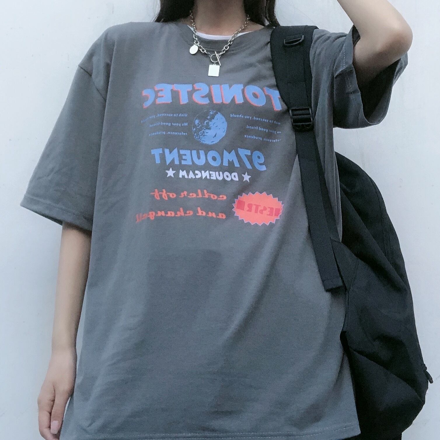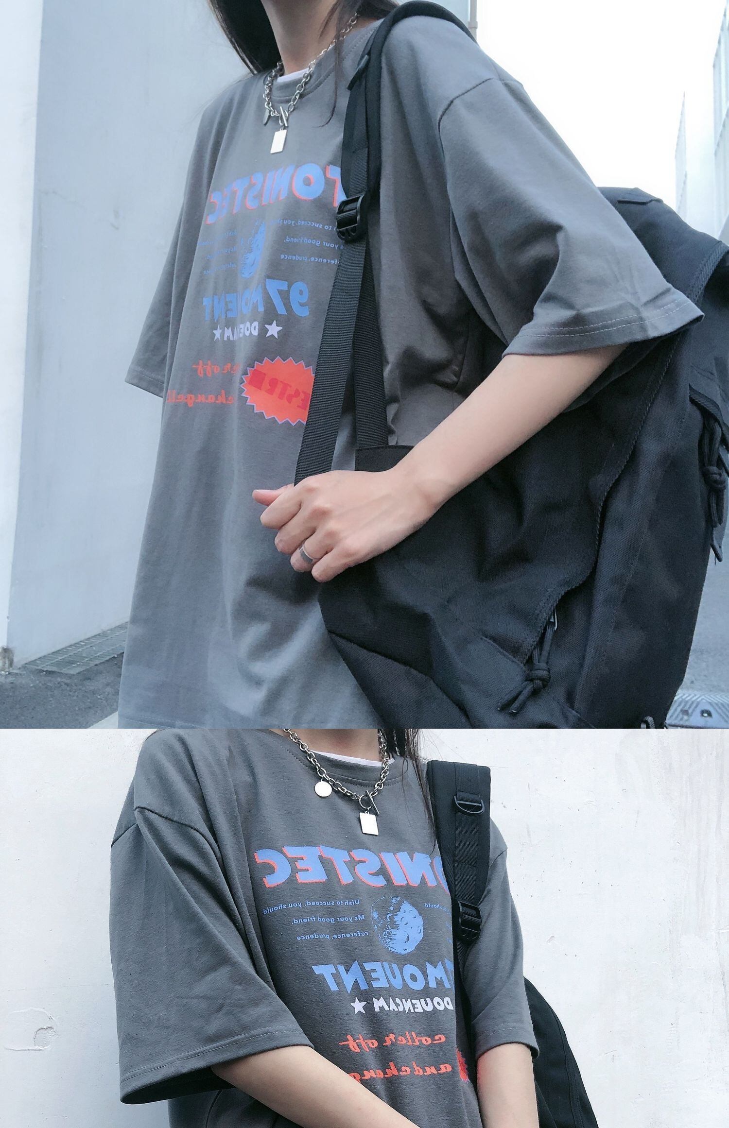 夏服Tシャツレディース韓国ファッショントレンドスタンダードプリントルーズラウンドネックトップス レトロ 夏物 Oネック スタイル デーモン11210345569