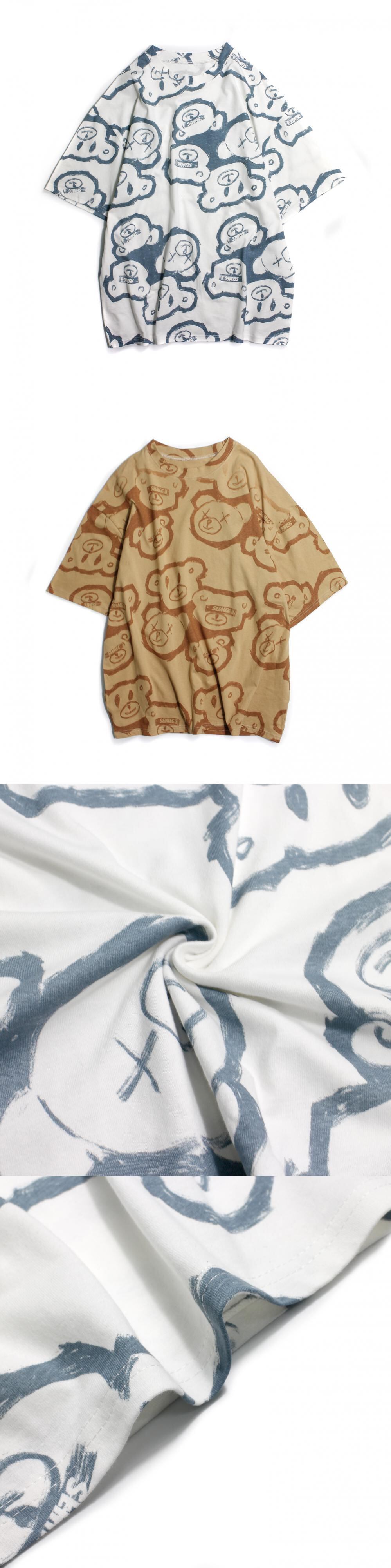 Tシャツスプリング韓国ファッショントレンドプリント柄ルーズラウンドネックトップス レディース 春物 Oネック スタイル デーモン61133346087