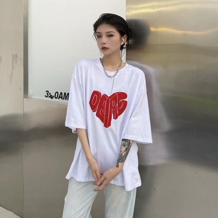 Tシャツレディース夏服韓国ファッショントレンドプリントルーズカジュアルトップス 夏物 スタイル CHIL42998343872