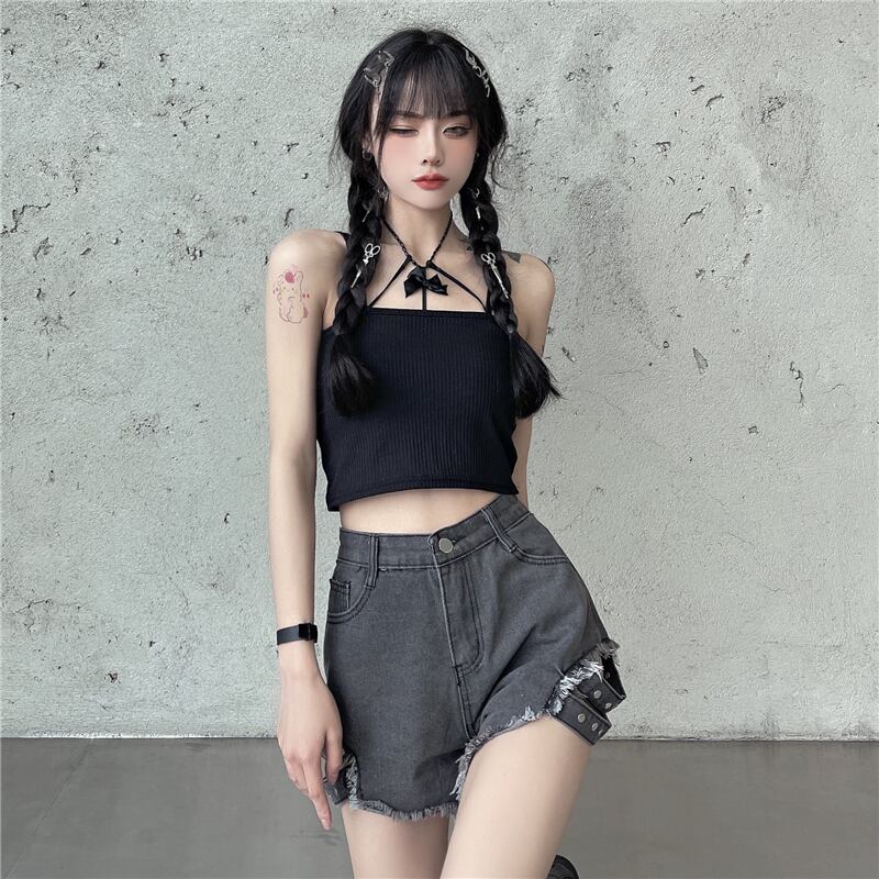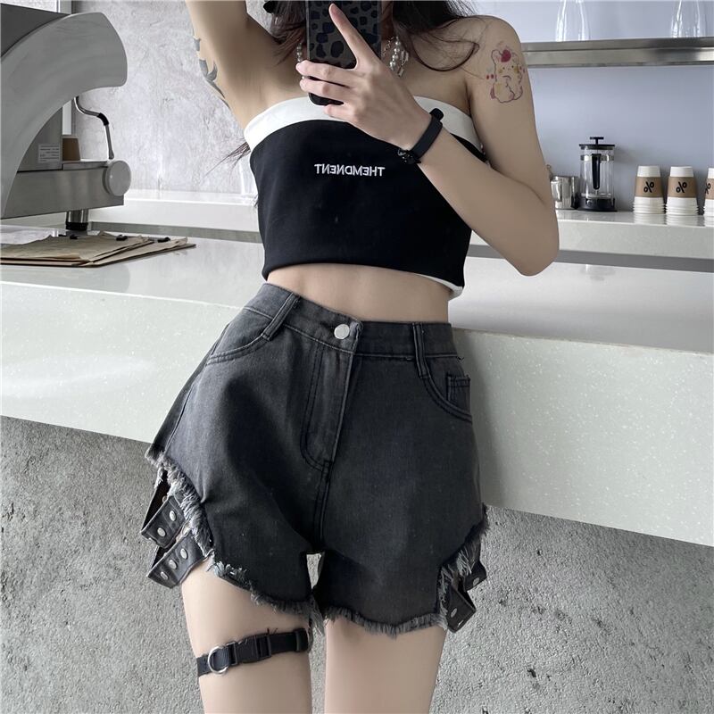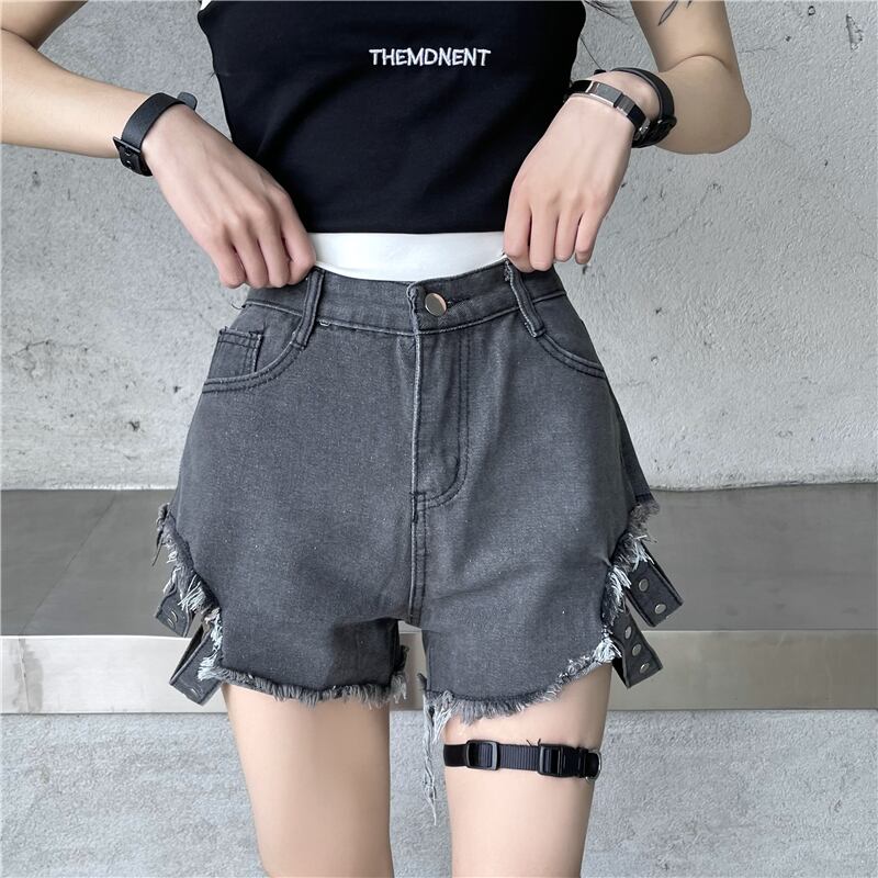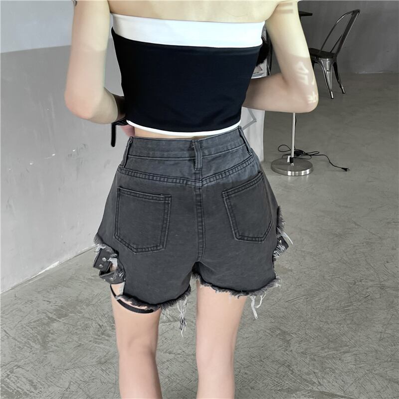 ショーツ 夏服トレンドブラックパンツ ハイウェストウェスト薄手ルーズ 夏物 ウエスト デーモン21938083892