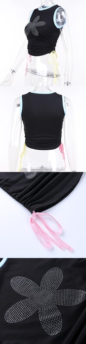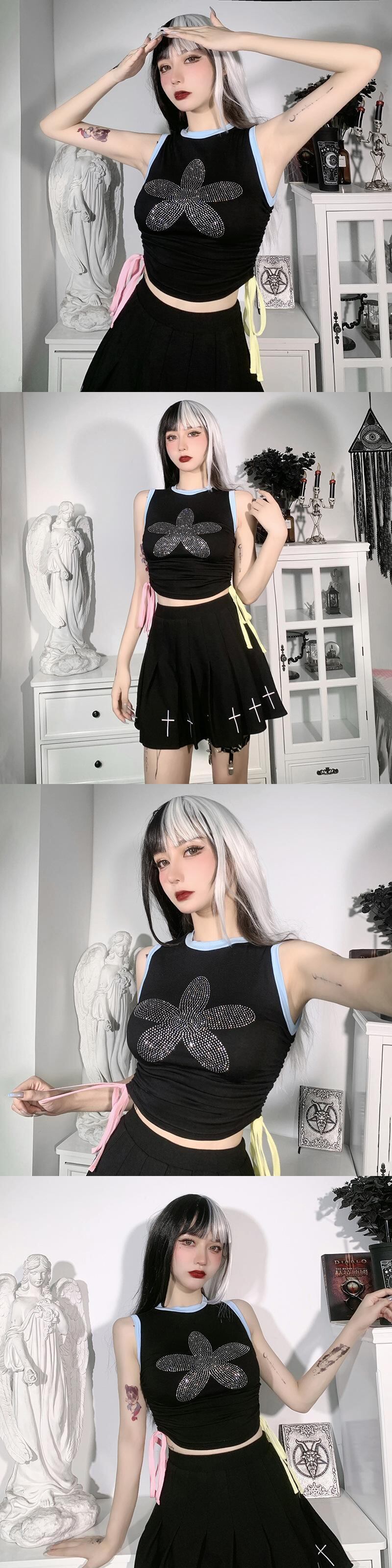 ダークラウンドネックカラー韓国ファッションショートギャザー 大人ガーリー スウィート キュート カジュアル Oネック YU88923518843
