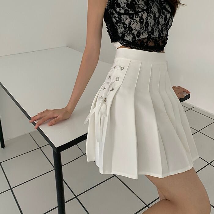 スカート レディース韓国ファッションハイウェストウェストAラインプリーツ夏服 夏物 スタイル ウエスト CHIL46787074371