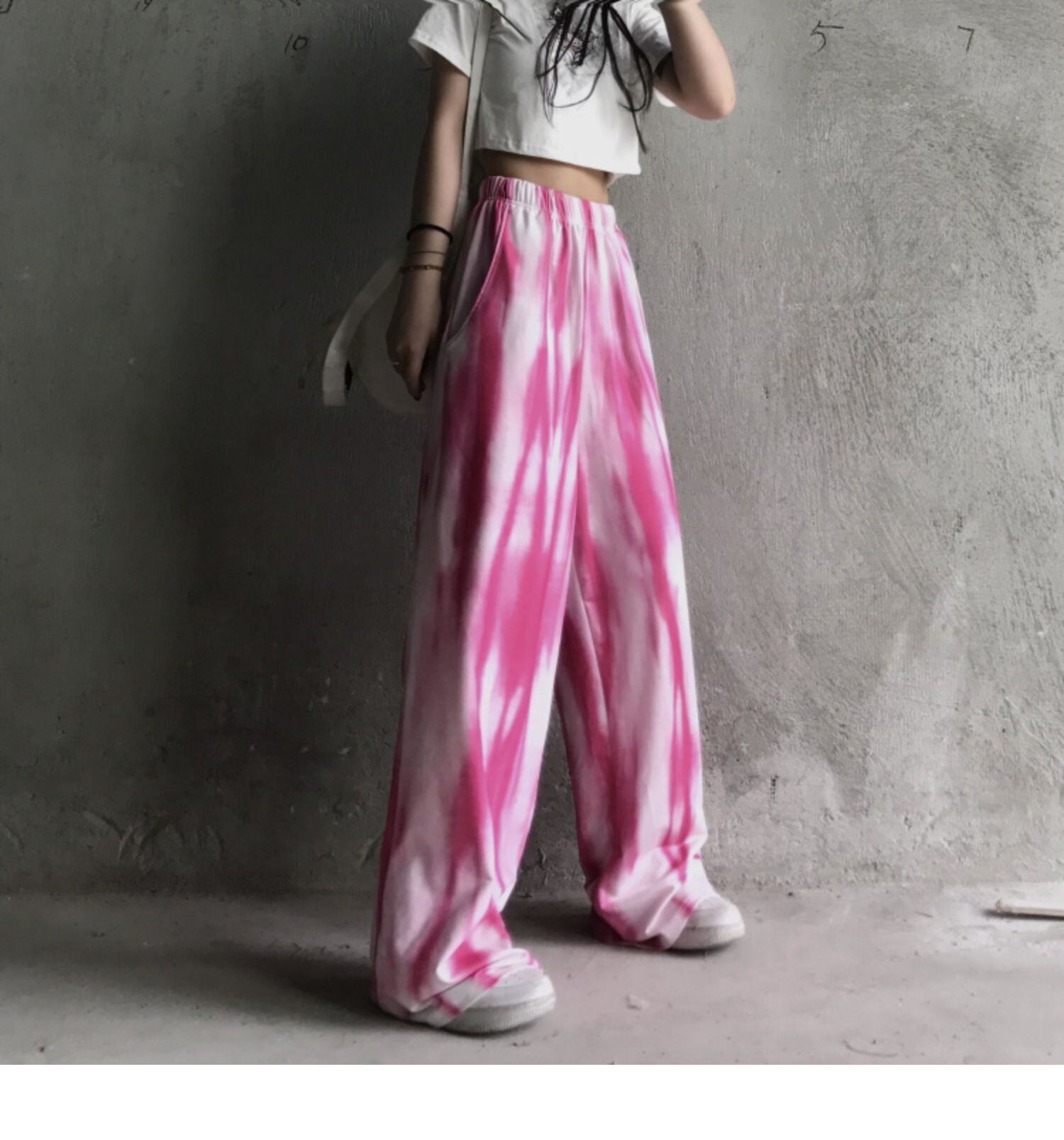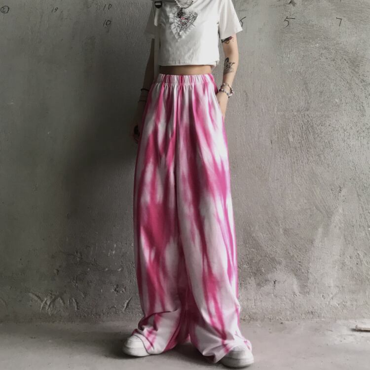 パンツ レディース夏服トレンドルーズワイドレッグハイウェストウェストカジュアル ピンク ストリート 夏物 ワイドパンツ ウエスト デーモン2573619714