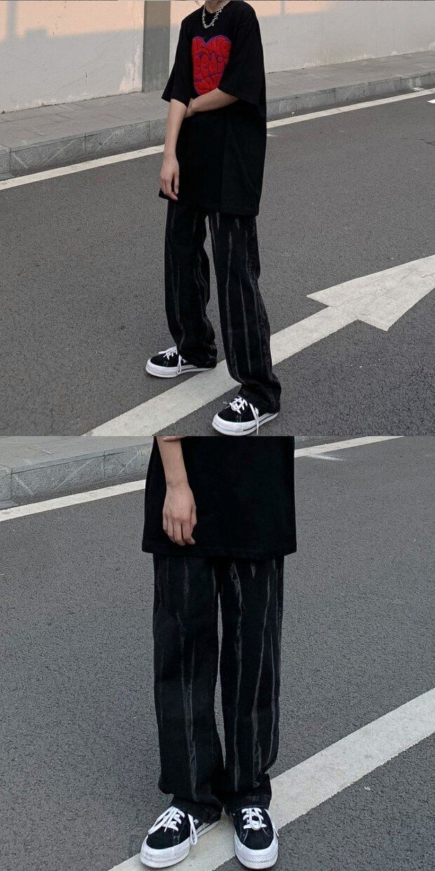 ジーンズ レディース夏服トレンドブラックパンツ ルーズハイウェスト ストリート 原宿 夏物 ウエスト デーモン62752871060
