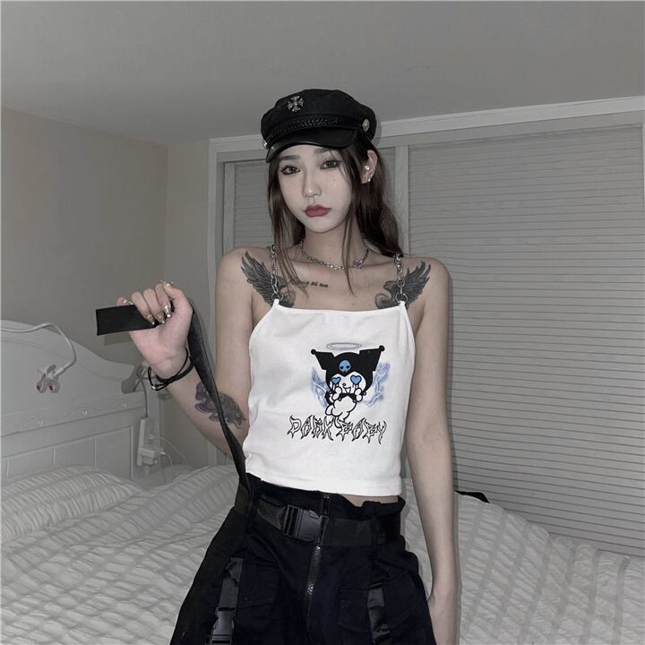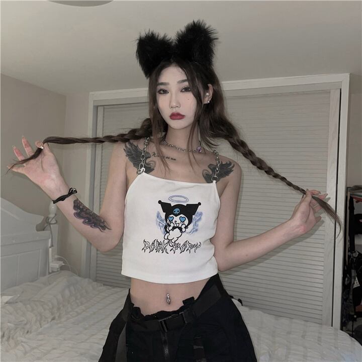 スタイルレディース夏服韓国ファッショントレンドショートスリムチェーン トップス 原宿 夏物 デーモン2412611841