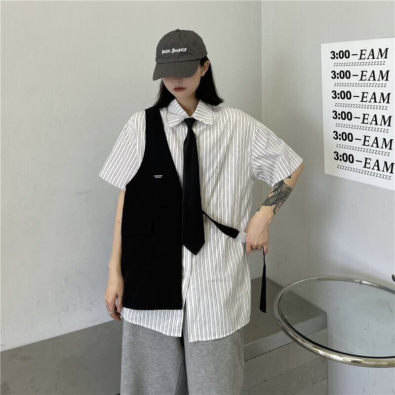 シャツ レディース夏服韓国ファッショントレンドルーズトップス 原宿 夏物 スタイル デーモン17373221930