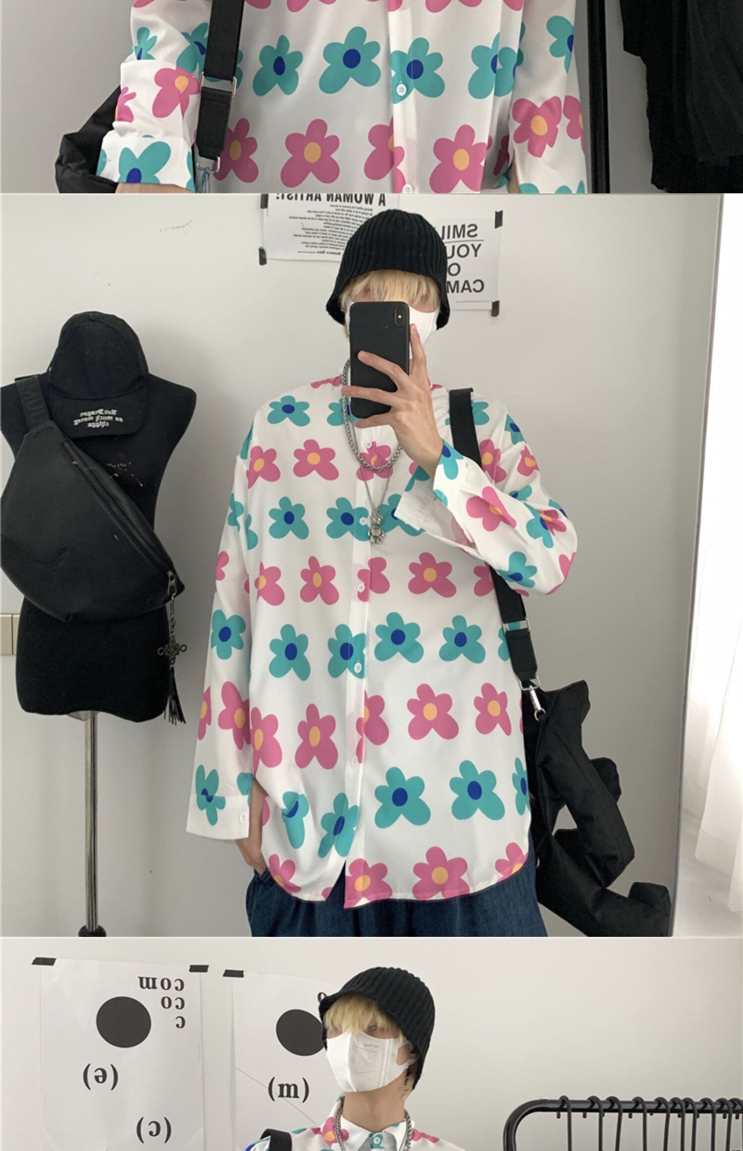スプリングシャツレディース韓国ファッショントレンドルーズジャケット ロング 春物 フラワーデザイン スタイル 長袖 デーモン63275765323