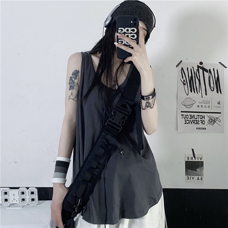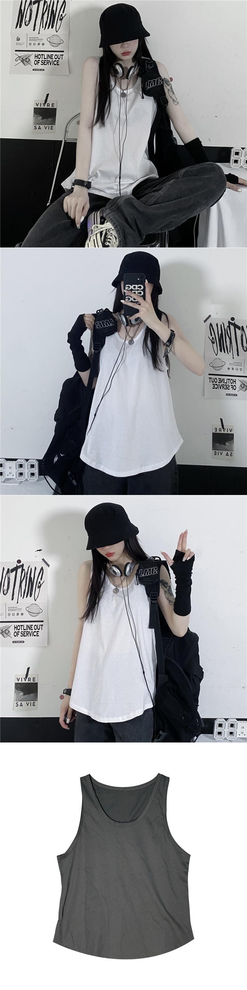 ノースリーブトップス レディース夏服韓国ファッショントレンドホワイトルーズTシャツ 夏物 ボーイズ スタイル デーモン37597106398