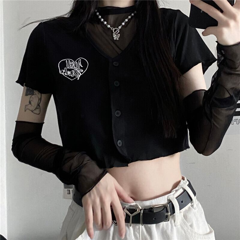 Tシャツシャツ レディース夏服韓国ファッショントレンドショート刺繍ルーズメッシュ 夏物 ボーイズ スタイル デーモン55771651837