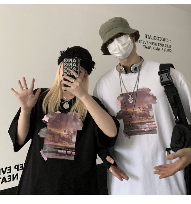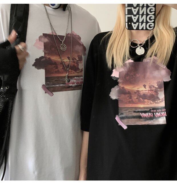 夏服Tシャツレディース韓国ファッショントレンドプリント柄ルーズトップス 夏物 スタイル デーモン7356596530