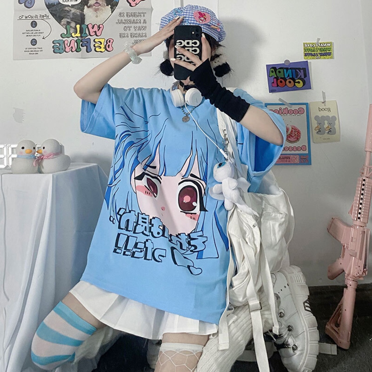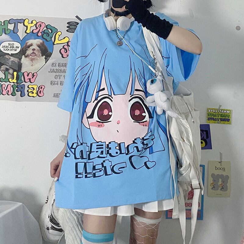 レディース夏服韓国ファッショントレンドプリントラウンドネックルーズシャツ Tシャツ 夏物 Oネック スタイル デーモン37706028971