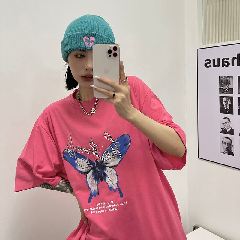 Tシャツレディース夏服韓国ファッショントレンドスタイルスタンダードButterflyデザイン プリントルーズ レトロ 原宿 夏物 CHIL2006021325