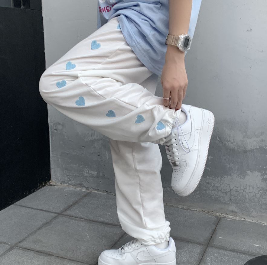 カジュアルパンツ レディーススプリングトレンド刺繍ホワイトルーズワイドレッグ ストリート 春物 ワイドパンツ ボーイズ デーモン86893784950