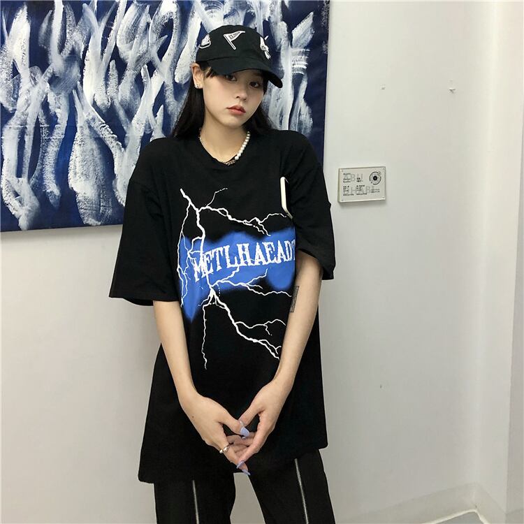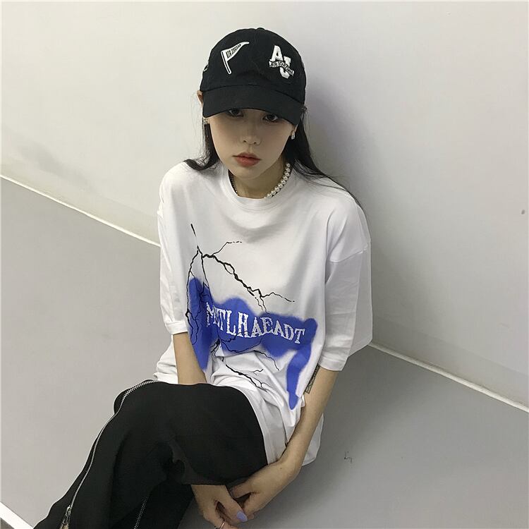 夏服ダークプリントルーズTシャツトップス ストリート 原宿 夏物 CHIL68272720556