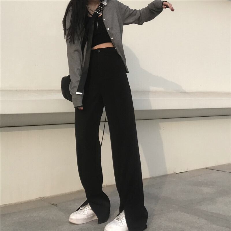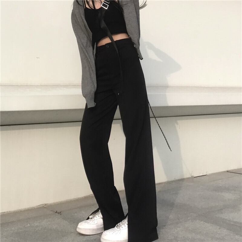 パンツ レディーススプリングトレンドブラックワイドレッグハイウェストウェストルーズ 春物 ワイドパンツ ボーイズ ウエスト デーモン67111446320