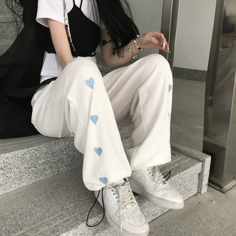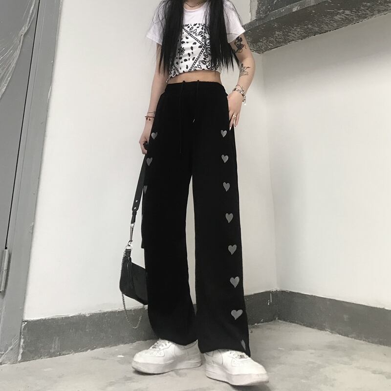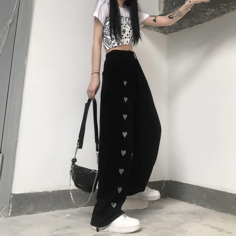 夏服パンツ レディースハート刺繍ギャザールーズワイドレッグ ストリート 夏物 ワイドパンツ ボーイズ デーモン73708882422