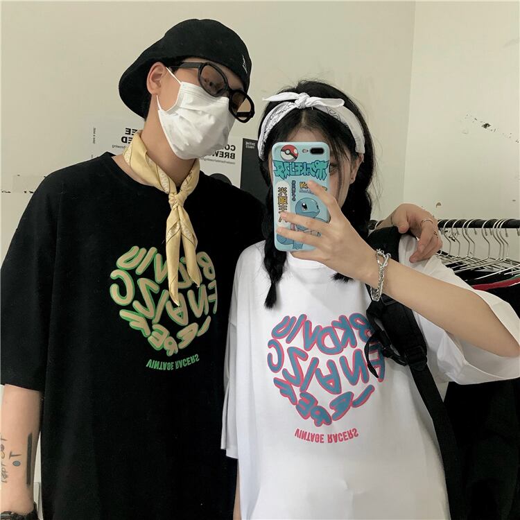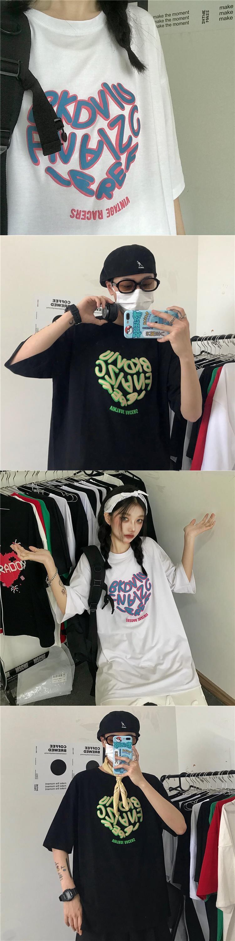 トレンドスタンダードプリントルーズTシャツメンズレディース レトロ CHIL70347452325