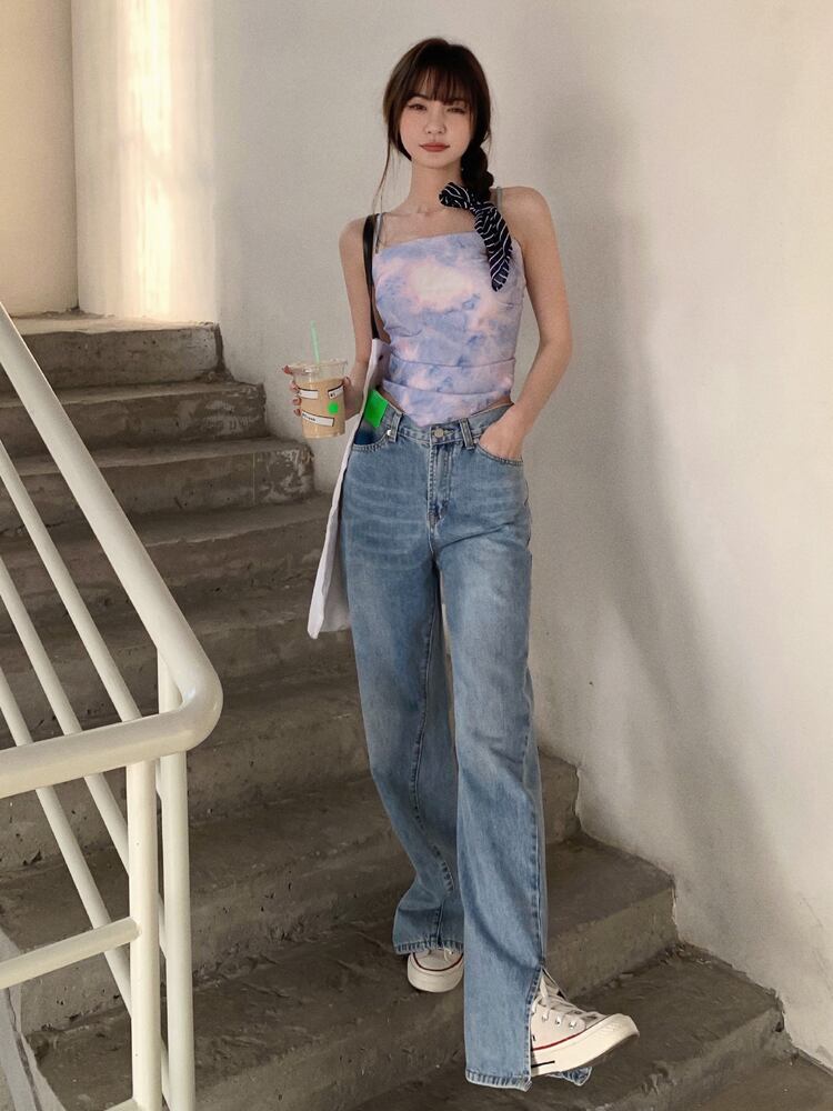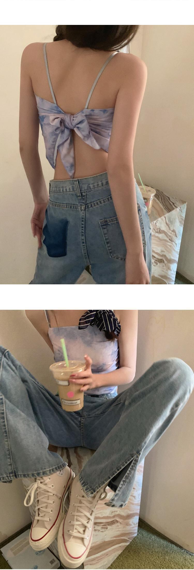 夏服ストラップ ショートゆったりシャツ トップス 夏物 CHIL54789132712