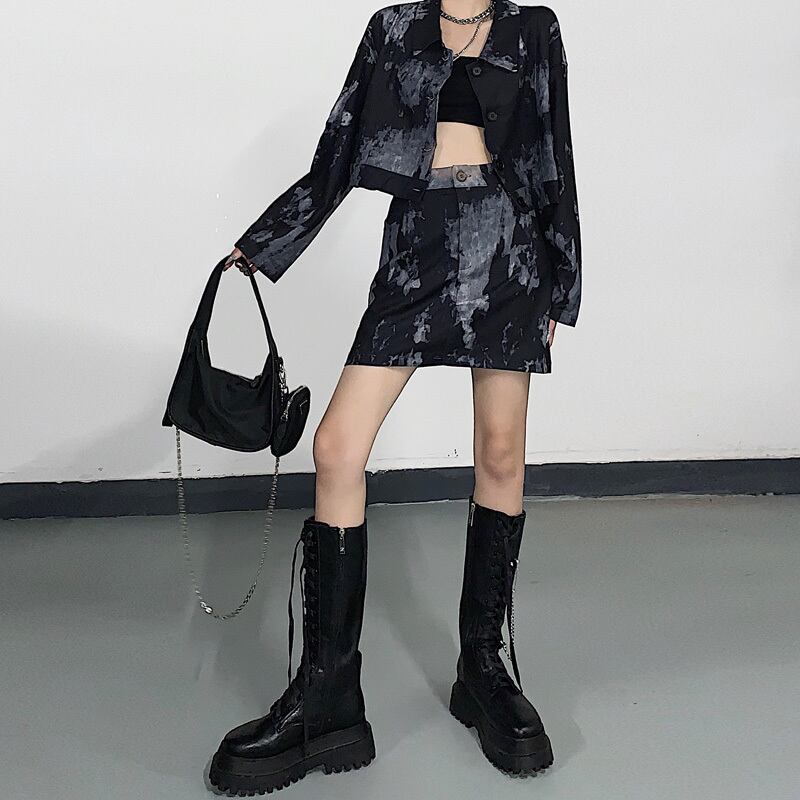 レディーススプリング韓国ファッショントレンドカジュアルショートジャケット ハイウェストウェストスカート 春物 スタイル ウエスト デーモン75235534700