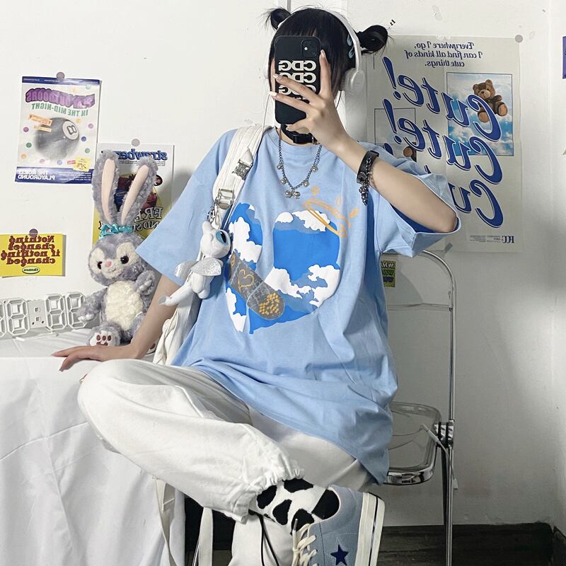夏服レディース韓国ファッショントレンドスタイルプリントルーズラウンドネックトップス Tシャツ 原宿 夏物 Oネック ボーイズ デーモン68186948282