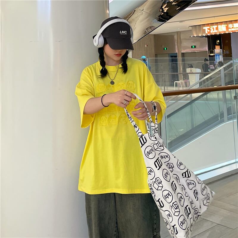 夏服レディース韓国ファッショントレンド刺繍ルーズラウンドネックトップス Tシャツ 大人ガーリー スウィート キュート カジュアル 夏物 Oネック スタイル デーモン51132985910