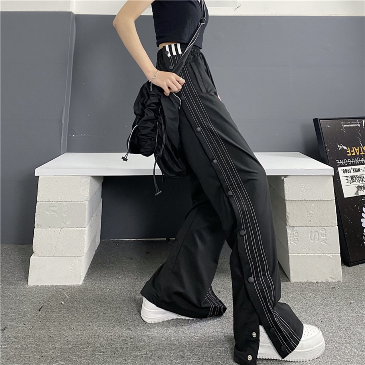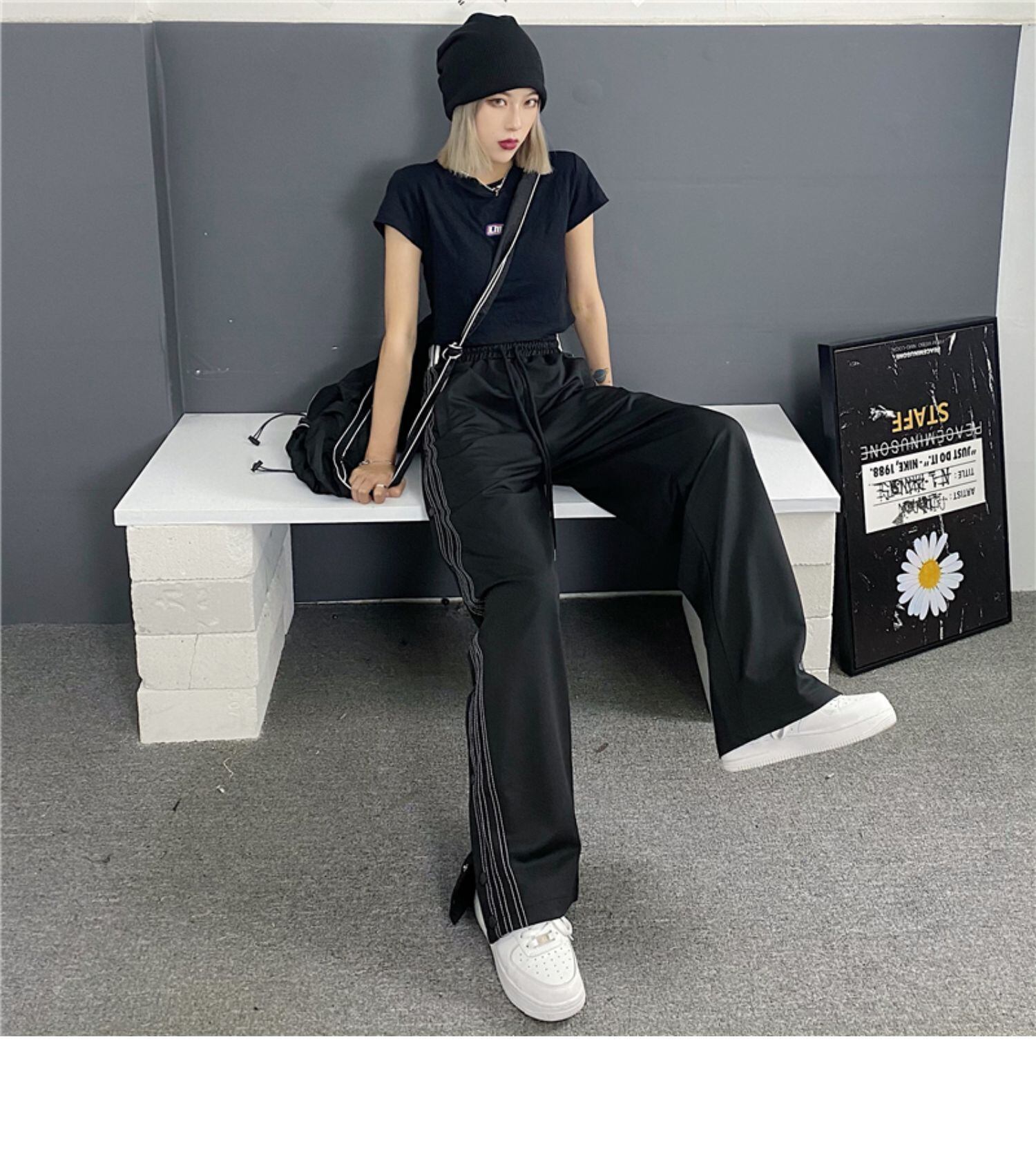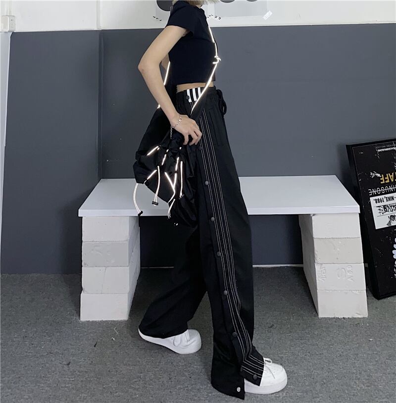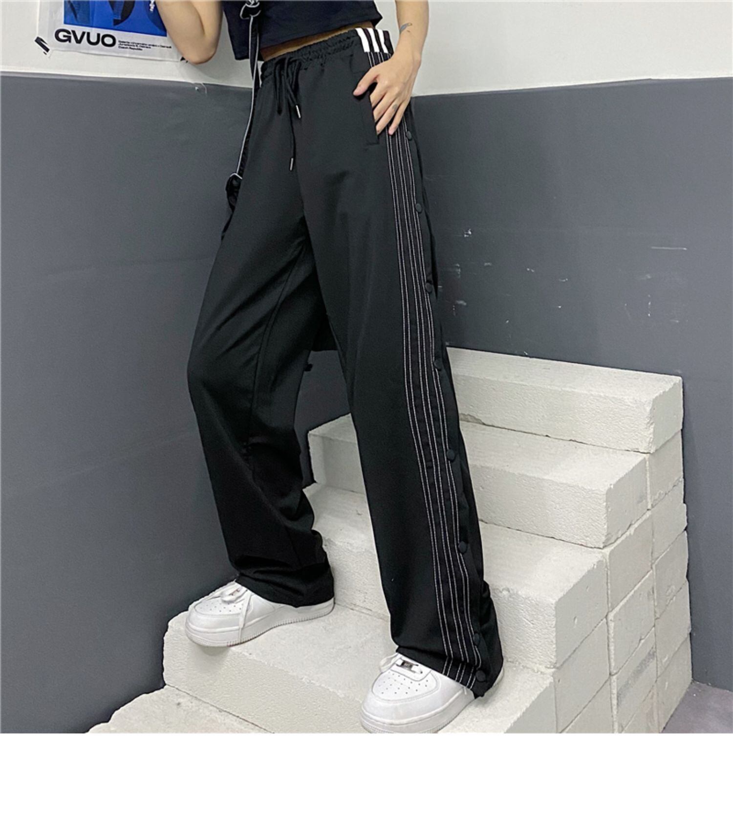 カジュアルパンツ 夏服トレンドルーズハイウェスト ストリート 夏物 ストライプ ウエスト デーモン70672391549