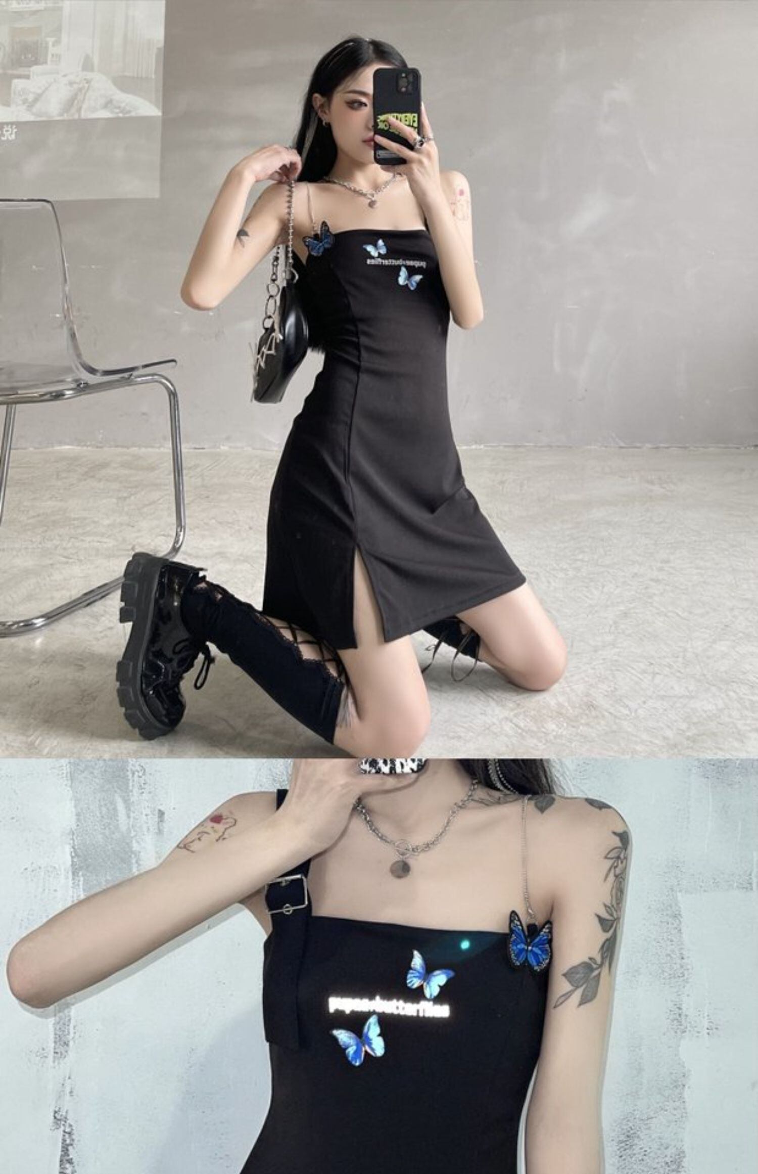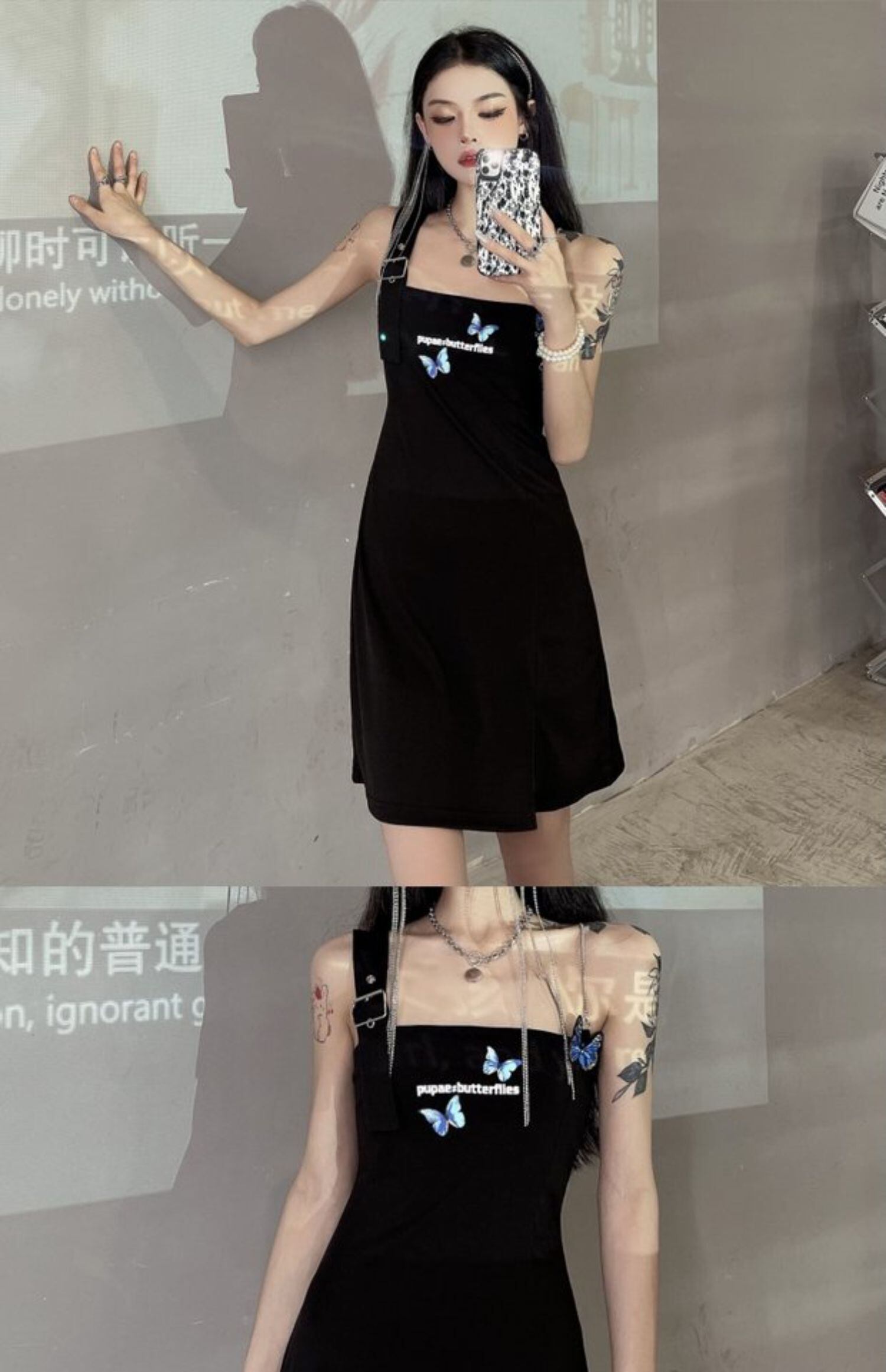 チェーン ワンピースレディース夏服韓国ファッショントレンドButterflyデザイン プリント柄スカート 夏物 スタイル ミドル丈 デーモン37507018373