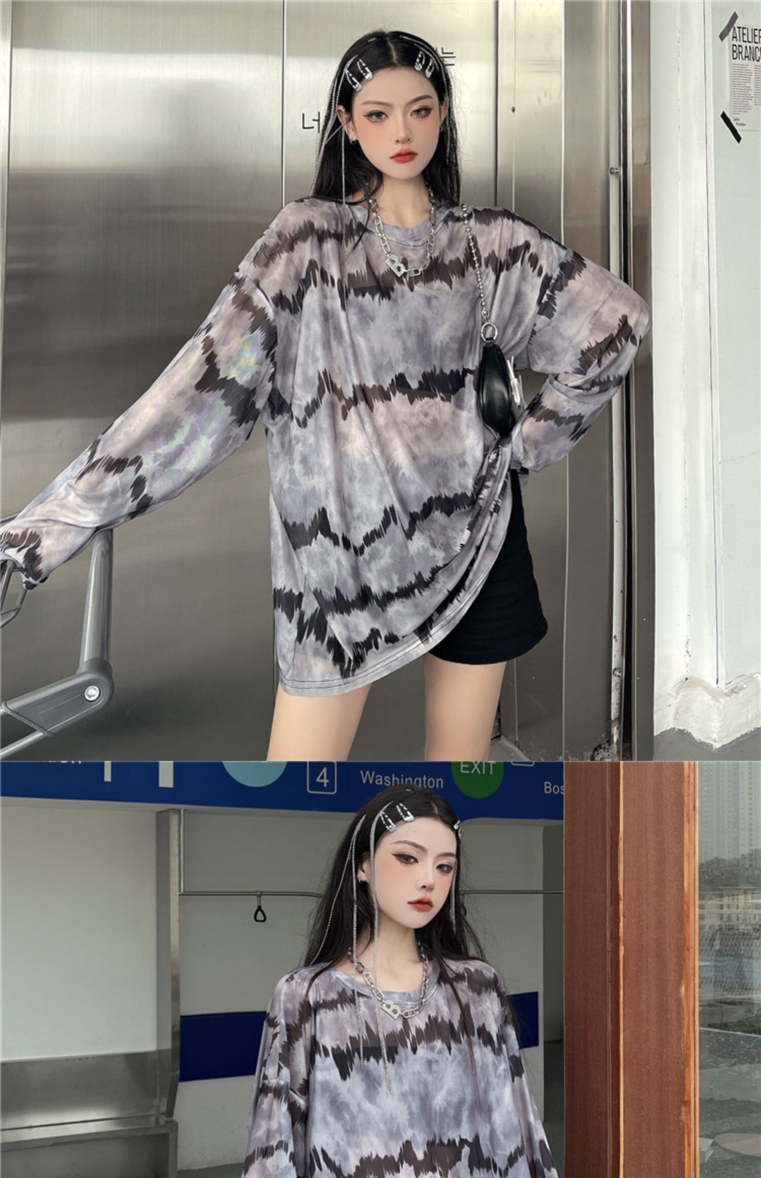 薄手トップス レディース夏服韓国ファッショントレンドダークルーズメッシュTシャツ ロング 夏物 スタイル 長袖 デーモン82702728269