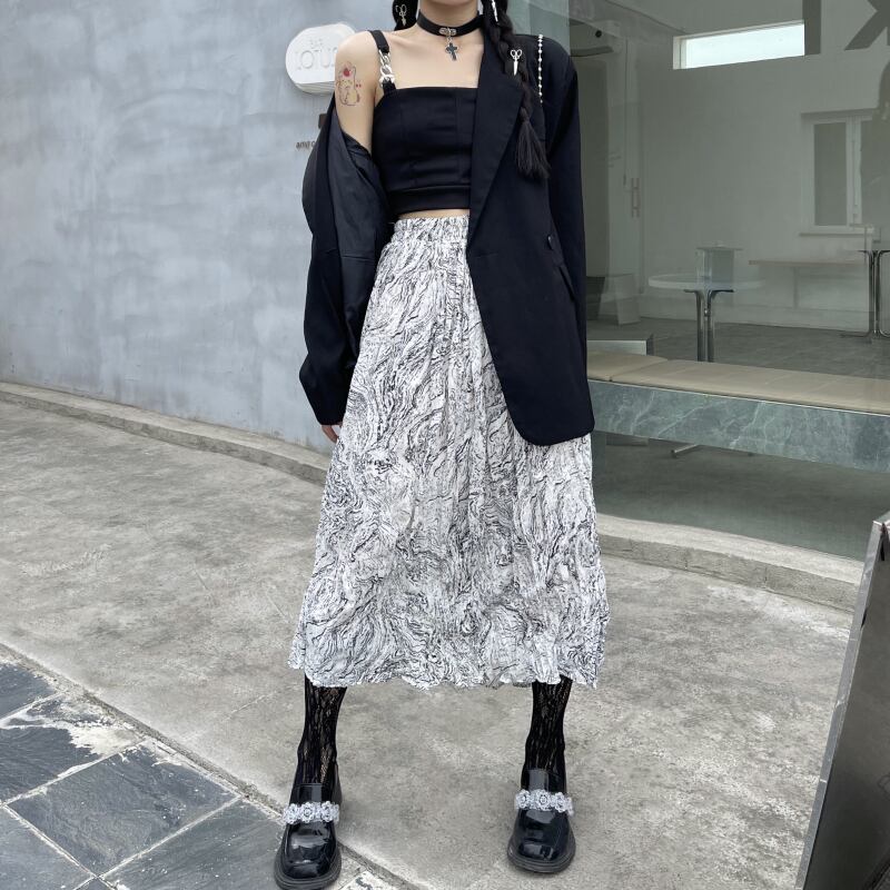 夏服スカート レディーストレンドスタンダードAラインシフォンハイウェストウェスト薄手 レトロ 夏物 ボーイズ ウエスト ミドル丈 デーモン33682651155