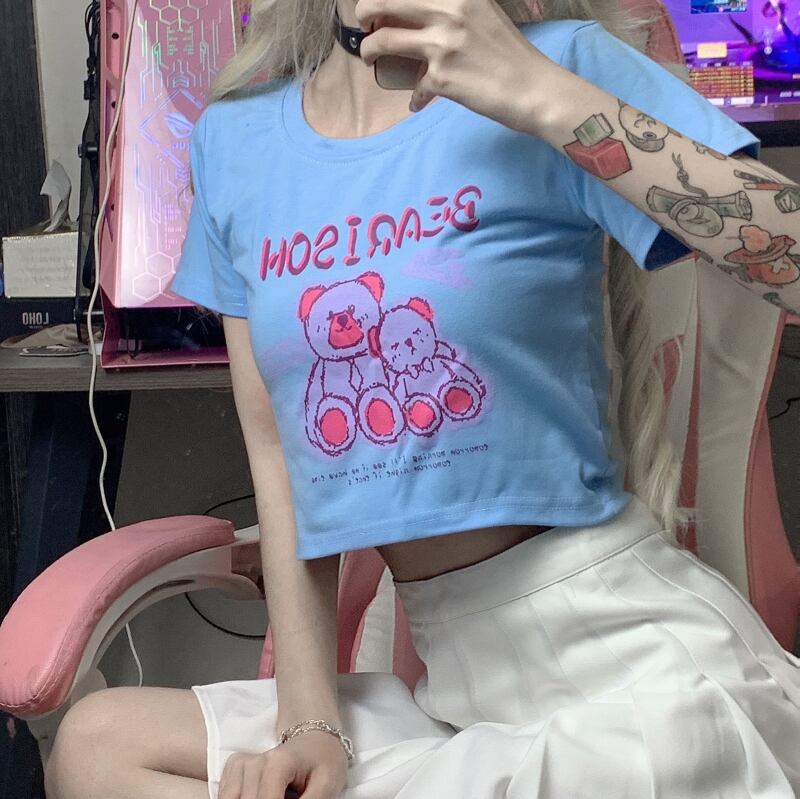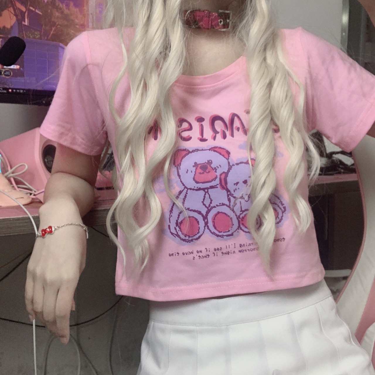 ショートTシャツレディース夏服韓国ファッショントレンドプリント柄ルーズトップス 大人ガーリー スウィート キュート カジュアル 夏物 スタイル デーモン5541414298
