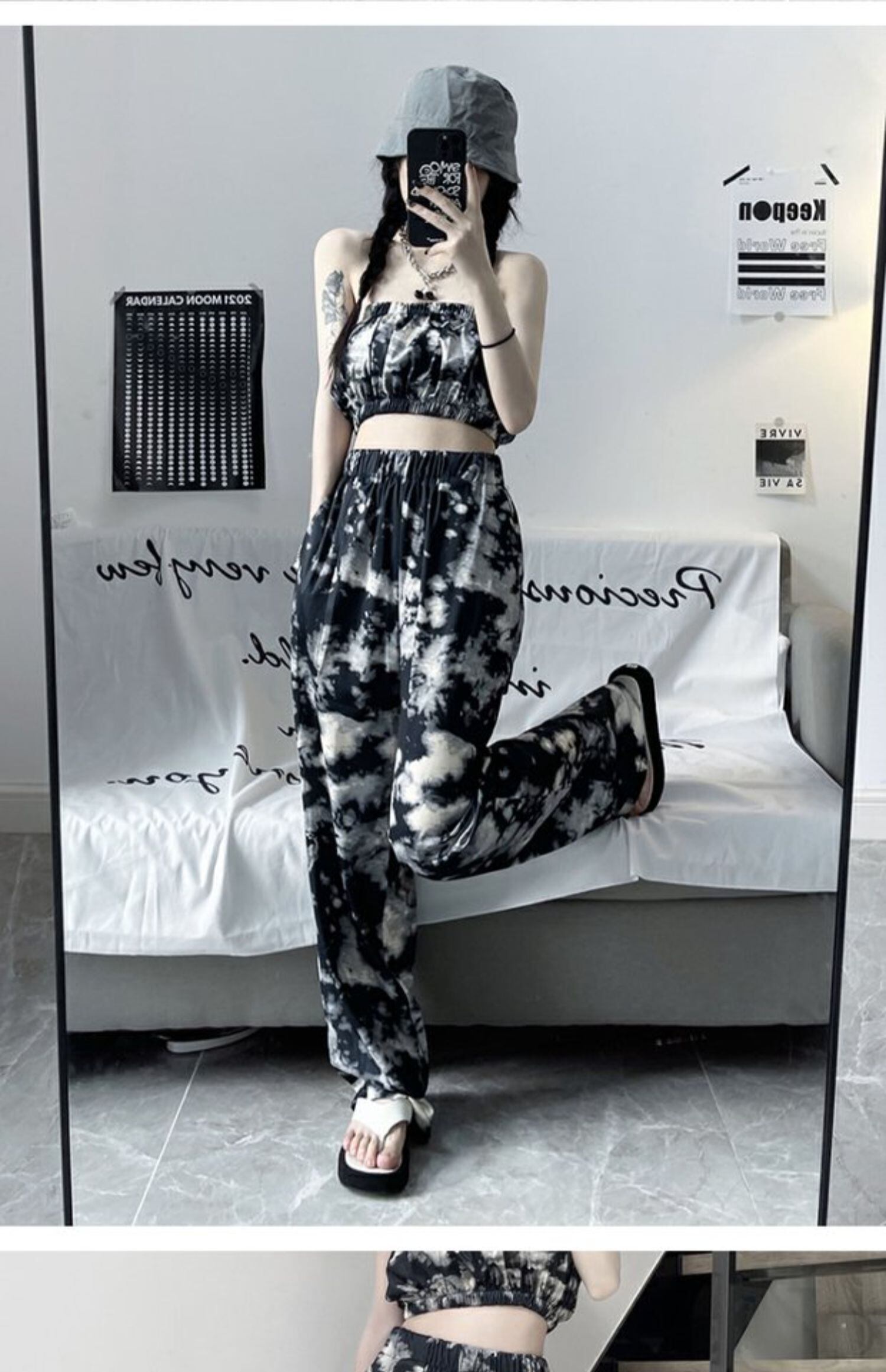 夏服レディーストレンドダークトップス ワイドレッグパンツ 夏物 ワイドパンツ ボーイズ デーモン24276048463