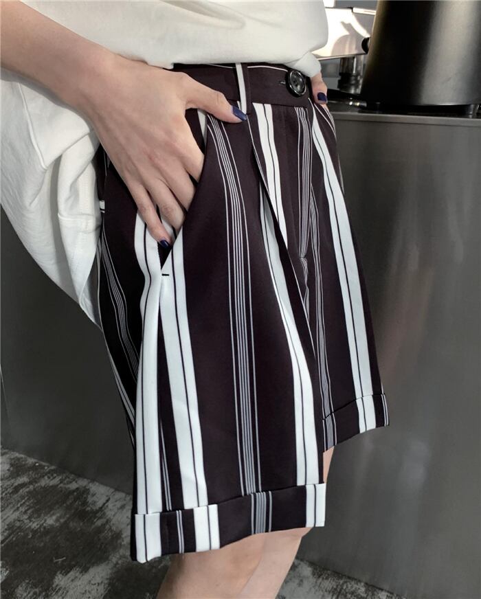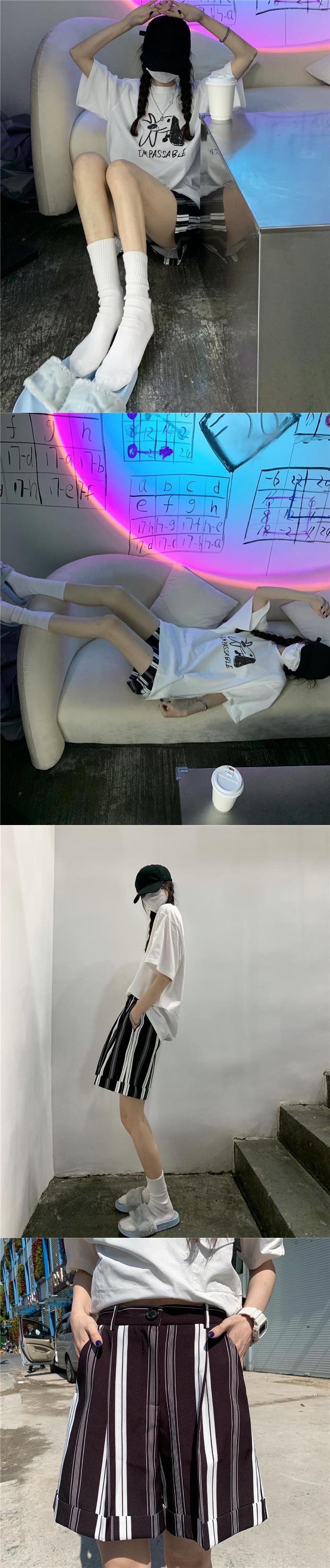 韓国ファッション夏服ストライプルーズハイウェストウェストスリムパンツ カジュアル 夏物 スタイル ウエスト CHIL13117841736