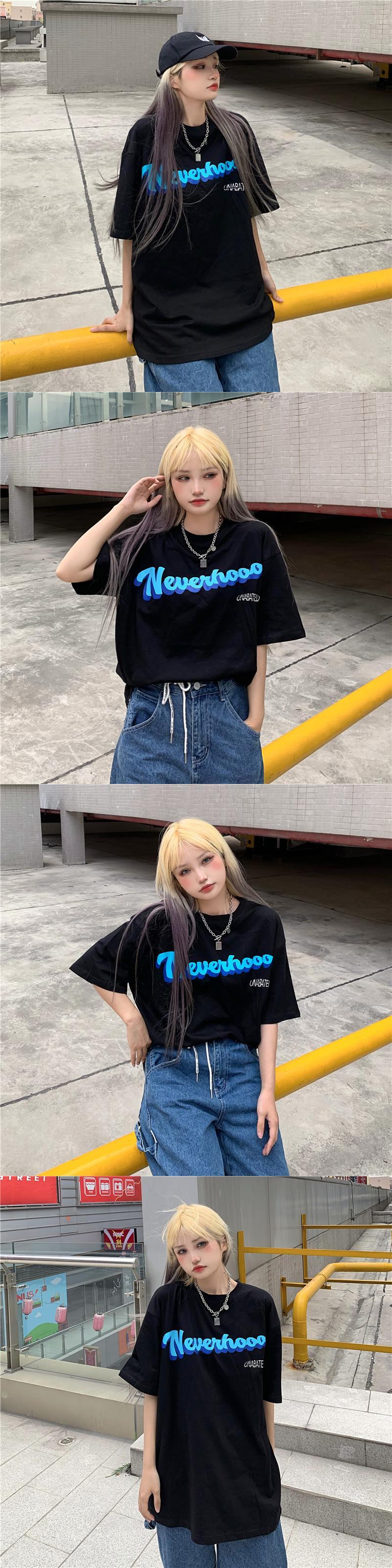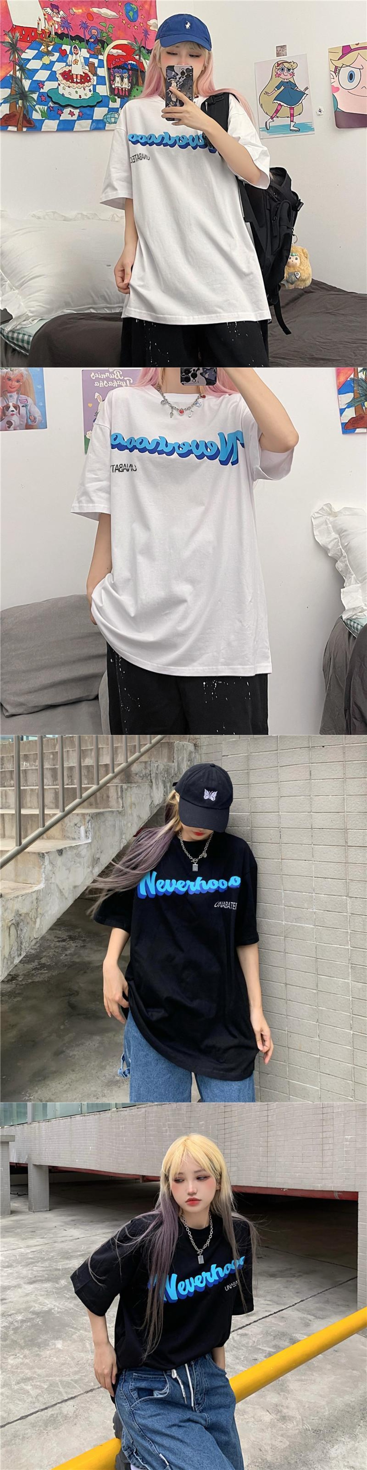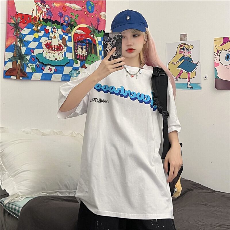 夏服Tシャツレディース韓国ファッショントレンドプリントホワイトルーズラウンドネックトップス 夏物 Oネック ボーイズ スタイル デーモン68250760687