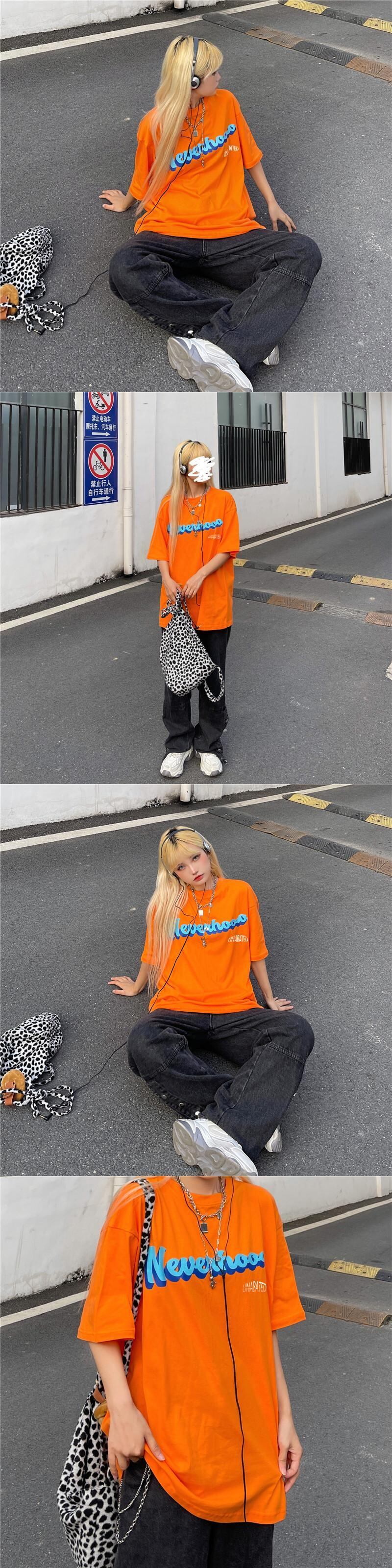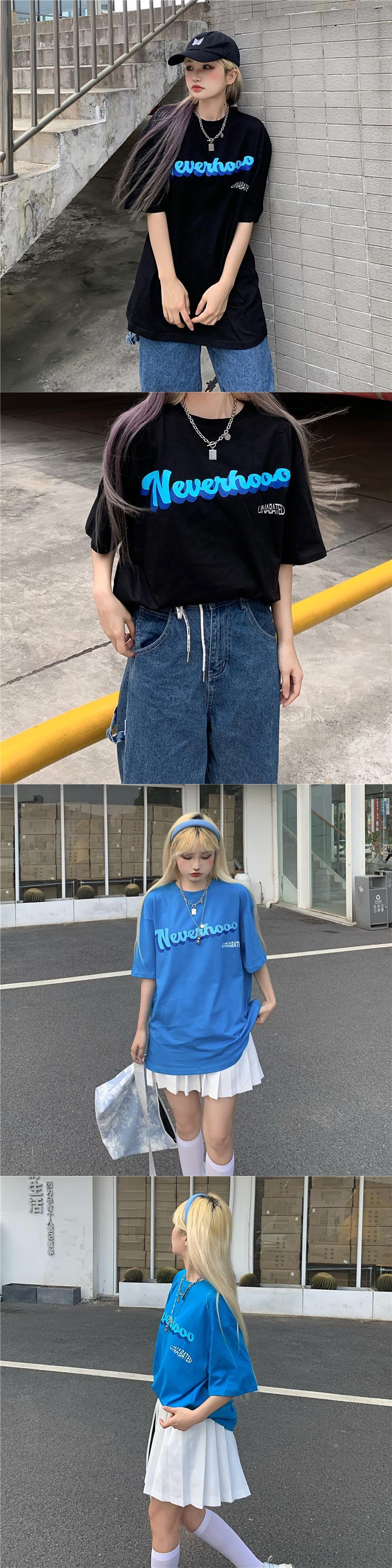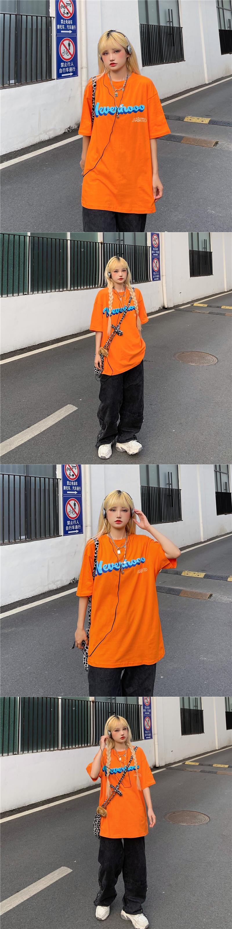 夏服Tシャツレディース韓国ファッショントレンドプリントホワイトルーズラウンドネックトップス 夏物 Oネック ボーイズ スタイル デーモン68250760687