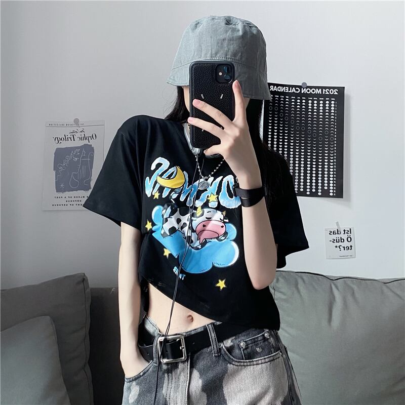 夏服ショートTシャツレディース韓国ファッショントレンドプリント柄ルーズトップス 大人ガーリー スウィート キュート カジュアル 夏物 スタイル デーモン88189865693