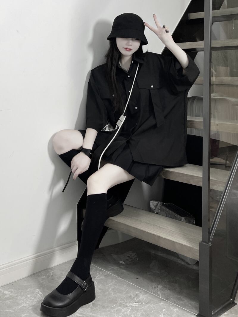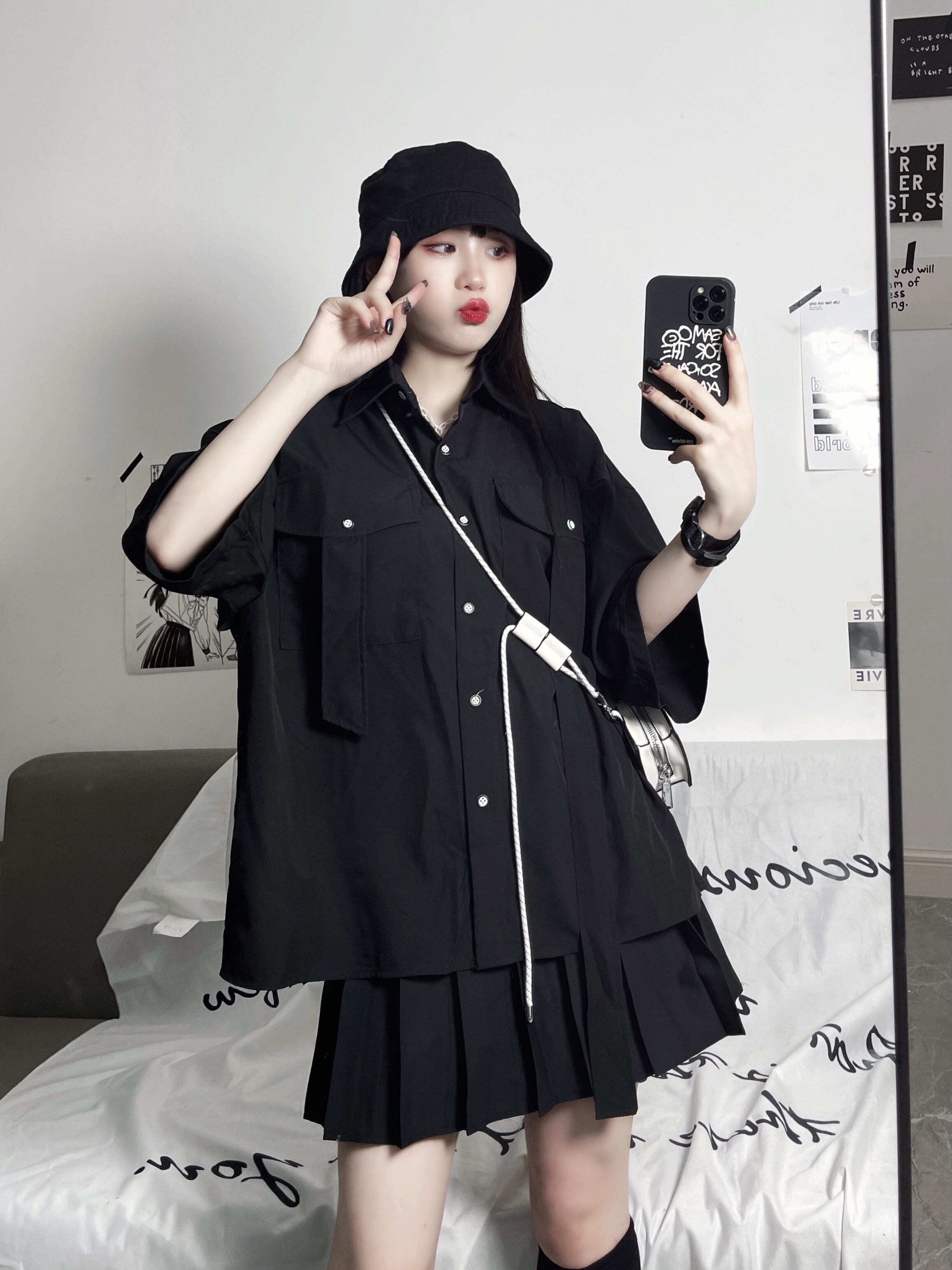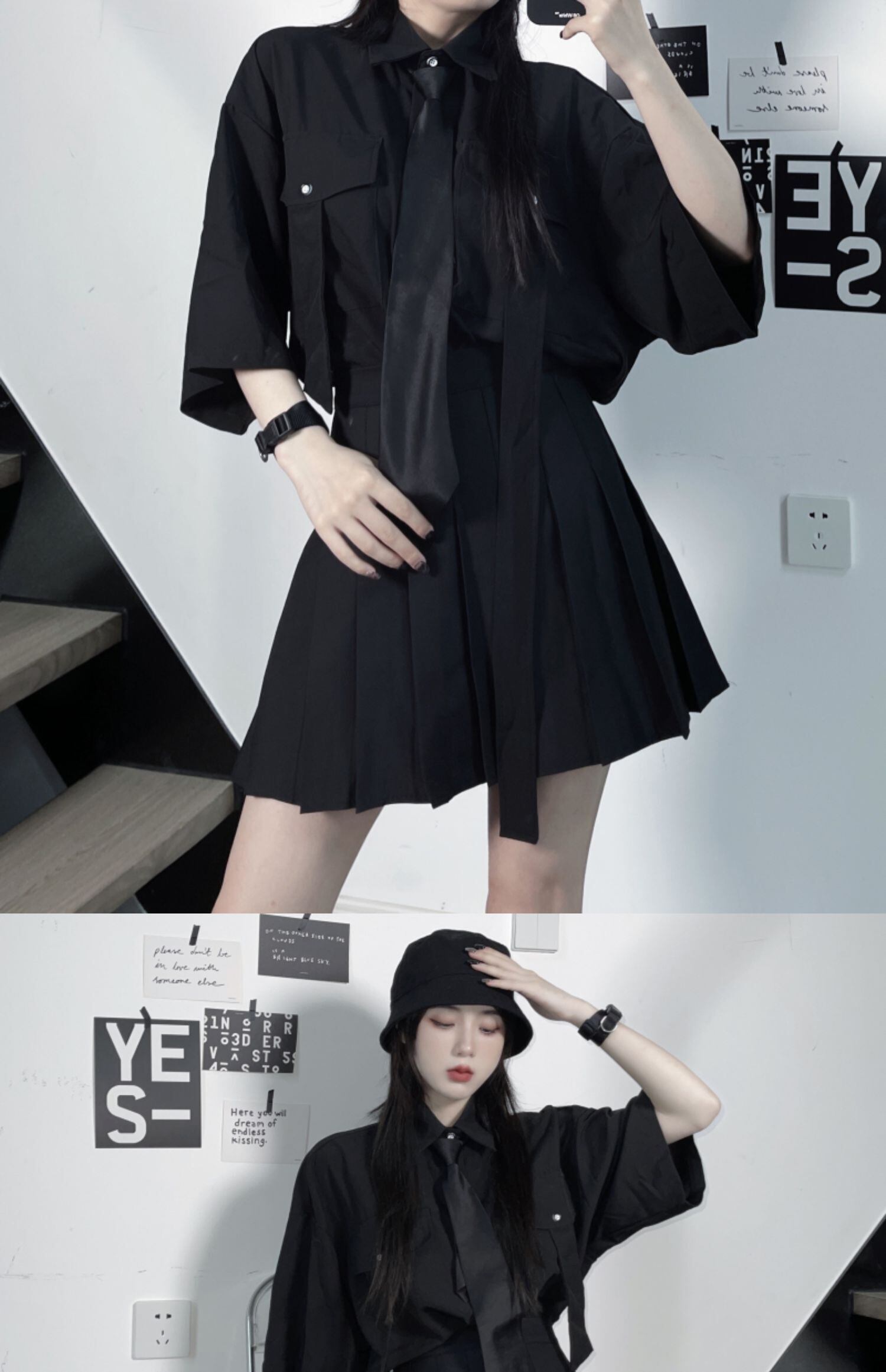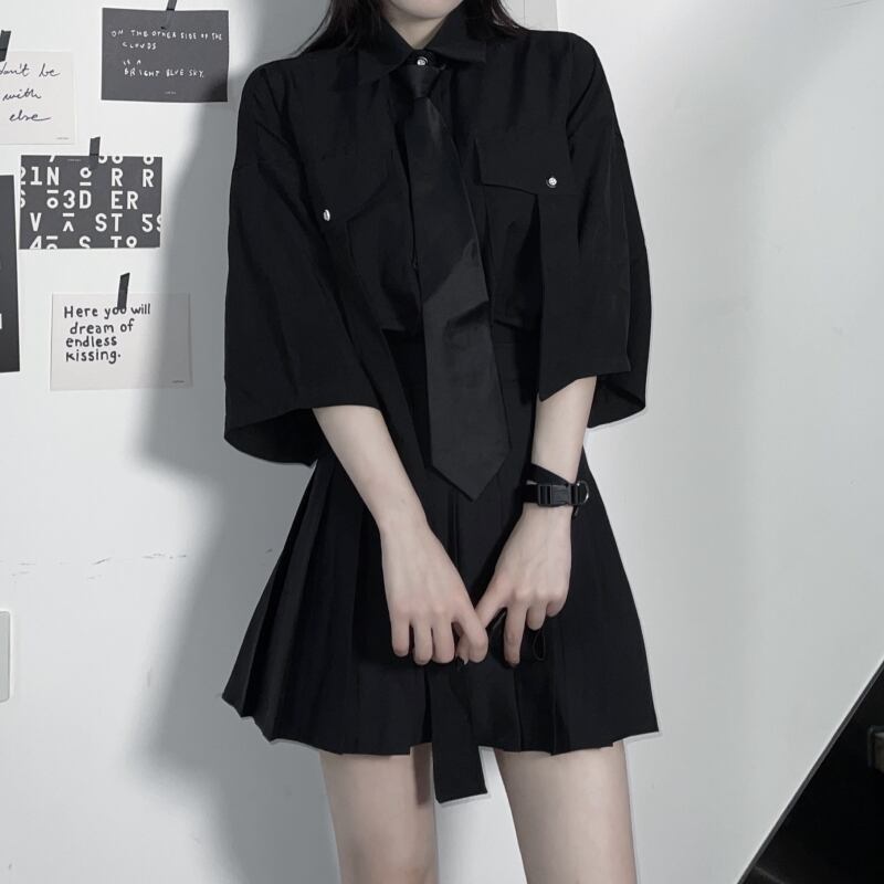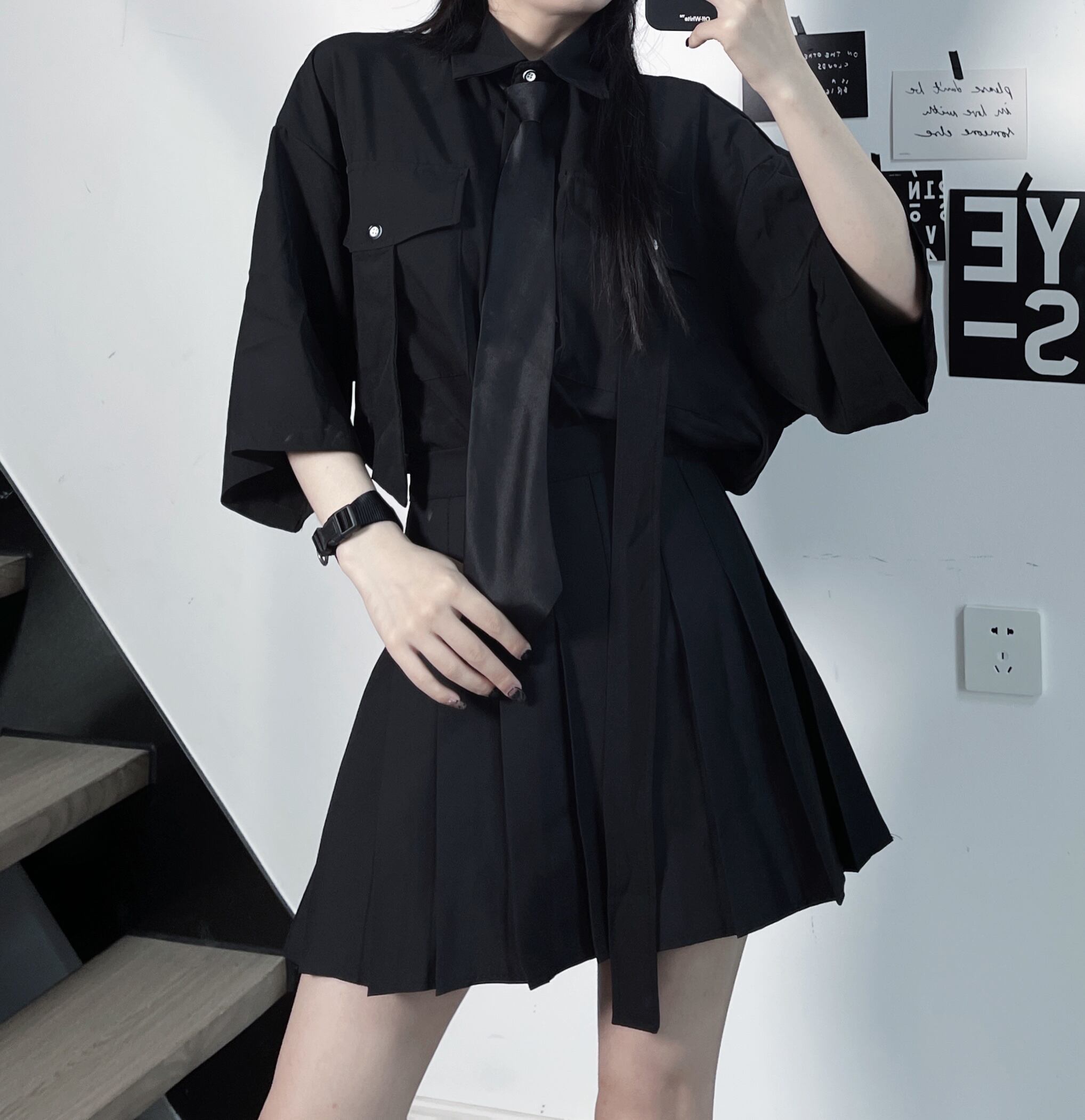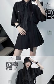夏服トレンドダークシャツ プリーツスカート 夏物 デーモン80146245245