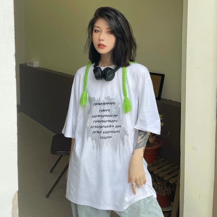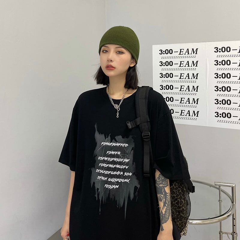 夏服ジャケット 韓国ファッショントレンドダークプリントラウンドネックルーズTシャツ 夏物 Oネック スタイル デーモン67410385263