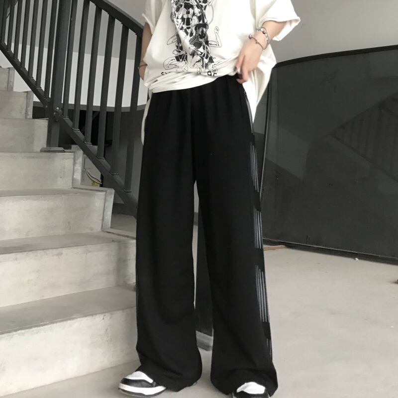 ルーズパンツ 夏服トレンドスタンダードストライププリントカジュアル薄手 レトロ 夏物 デーモン37810793981