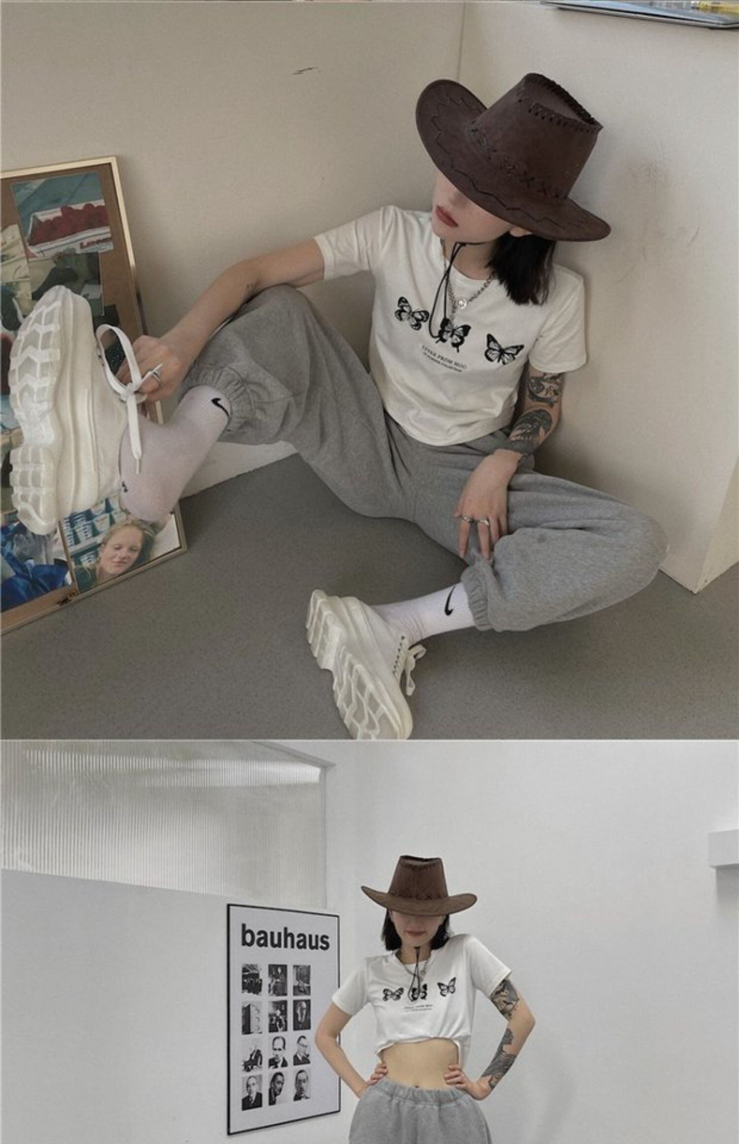 ショートTシャツレディース夏服韓国ファッショントレンドButterflyデザイン プリントホワイトルーズトップス 夏物 スタイル デーモン46999410644