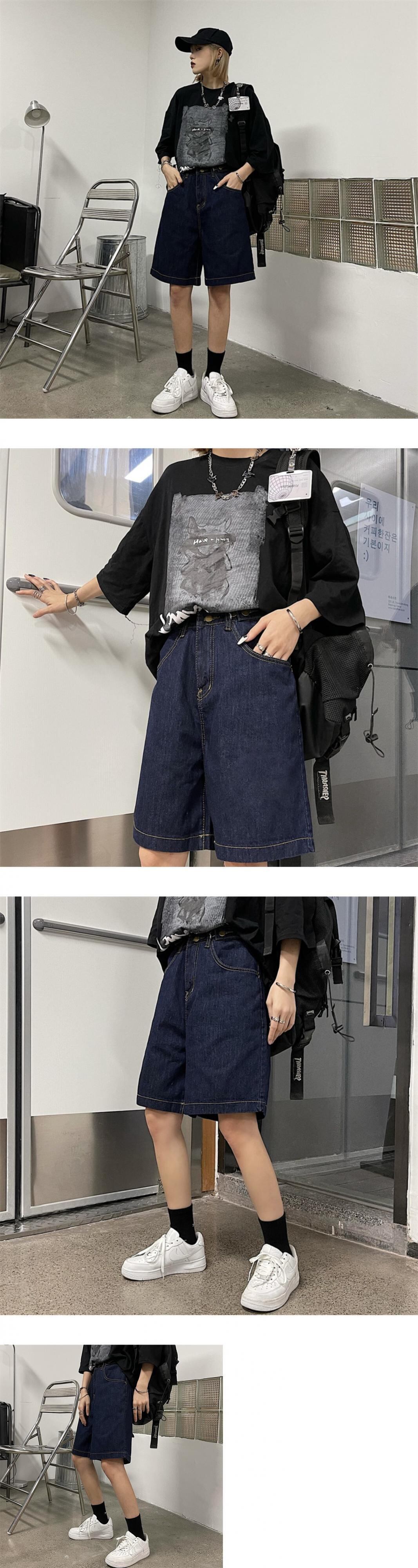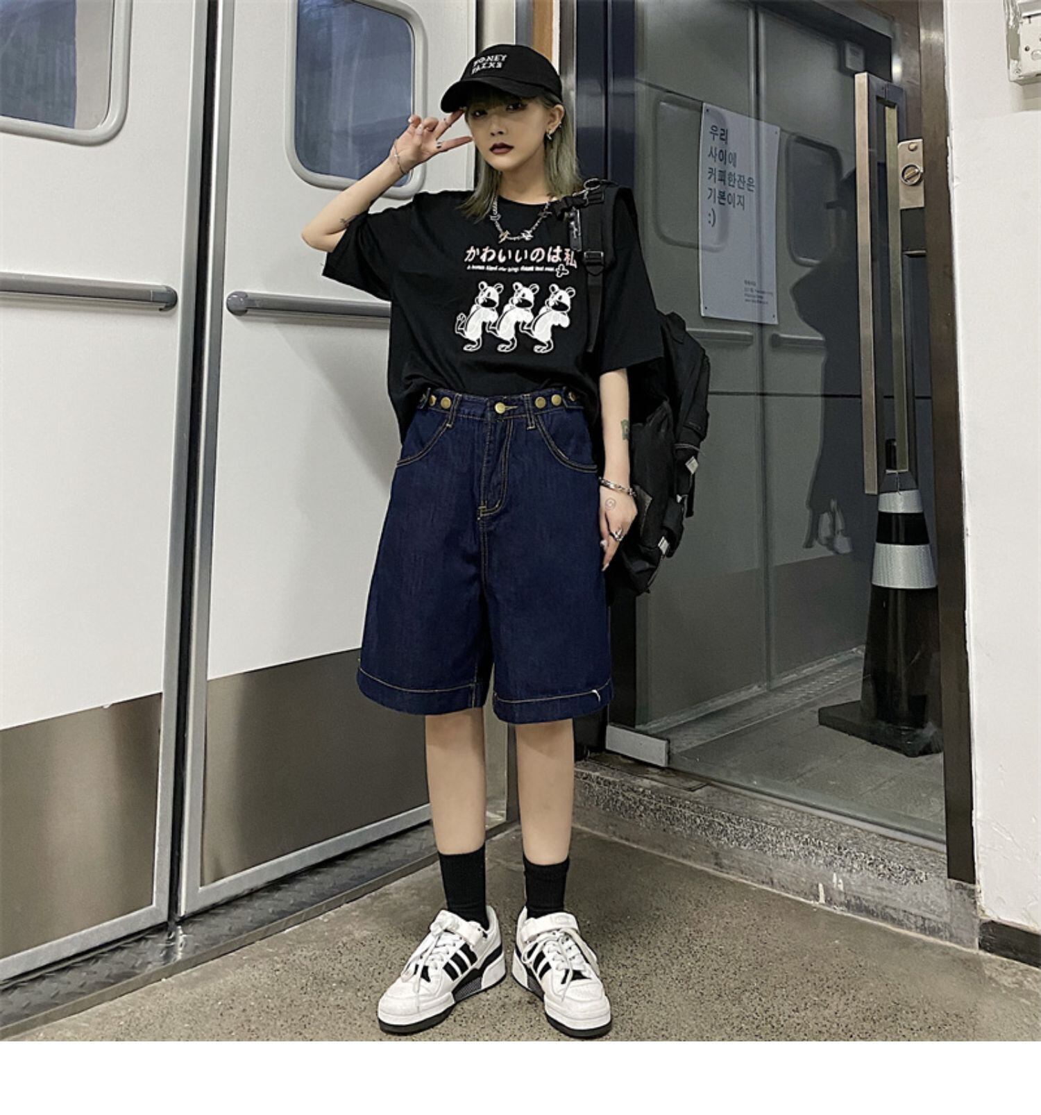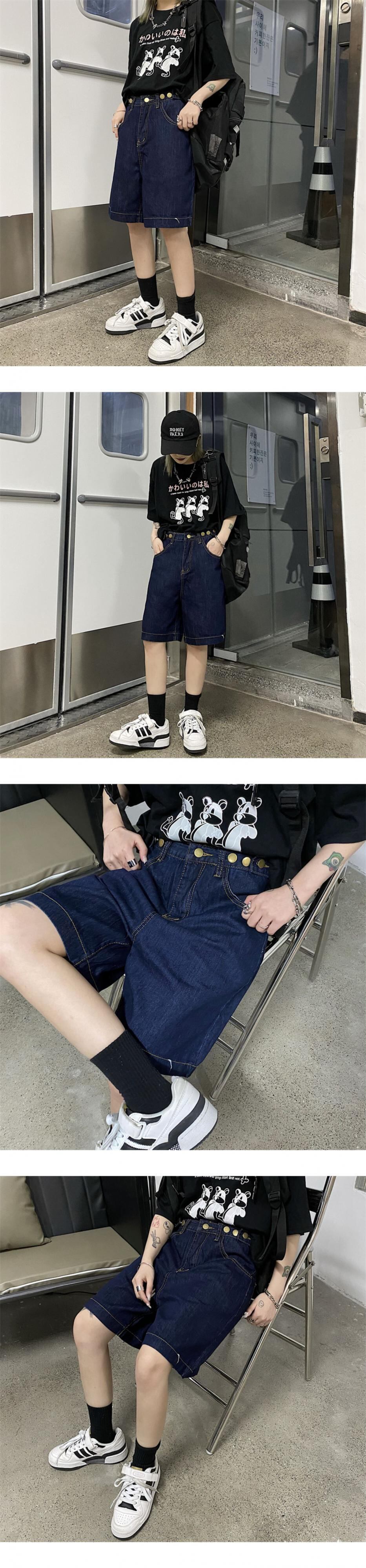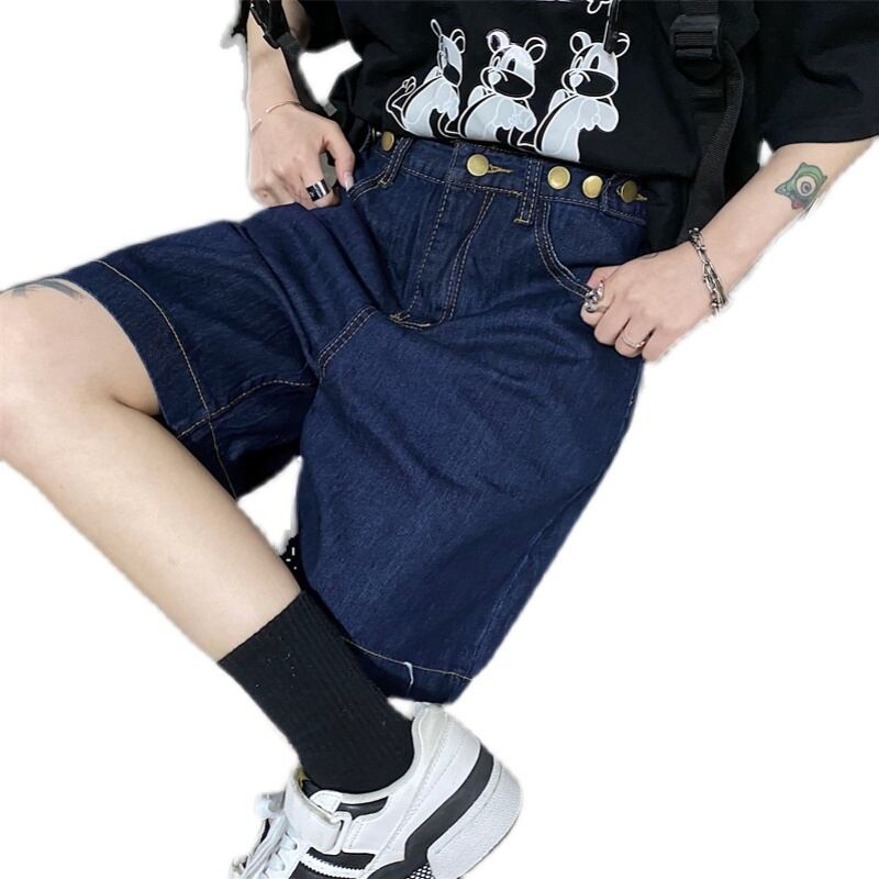 パンツ レディース夏服トレンドダークブルーショーツ ルーズハイウェストウェスト薄手ワイドレッグ 夏物 ワイドパンツ ウエスト デーモン34738706342