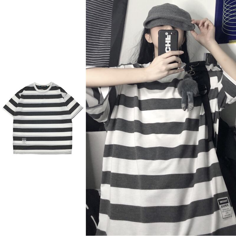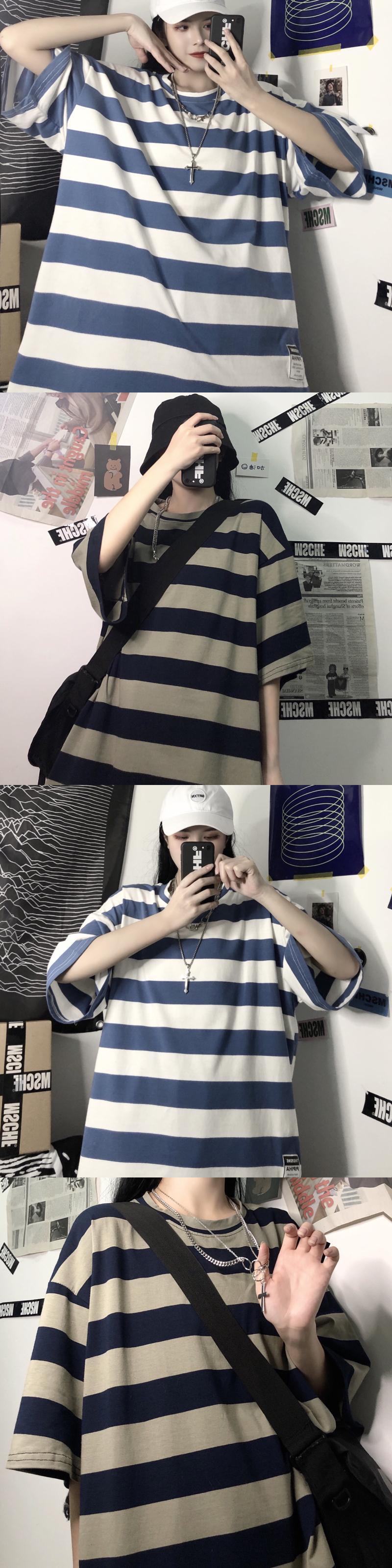 ジャケット レディース夏服韓国ファッショントレンドスタンダードストライプルーズラウンドネックTシャツ レトロ 夏物 Oネック スタイル デーモン13132171391