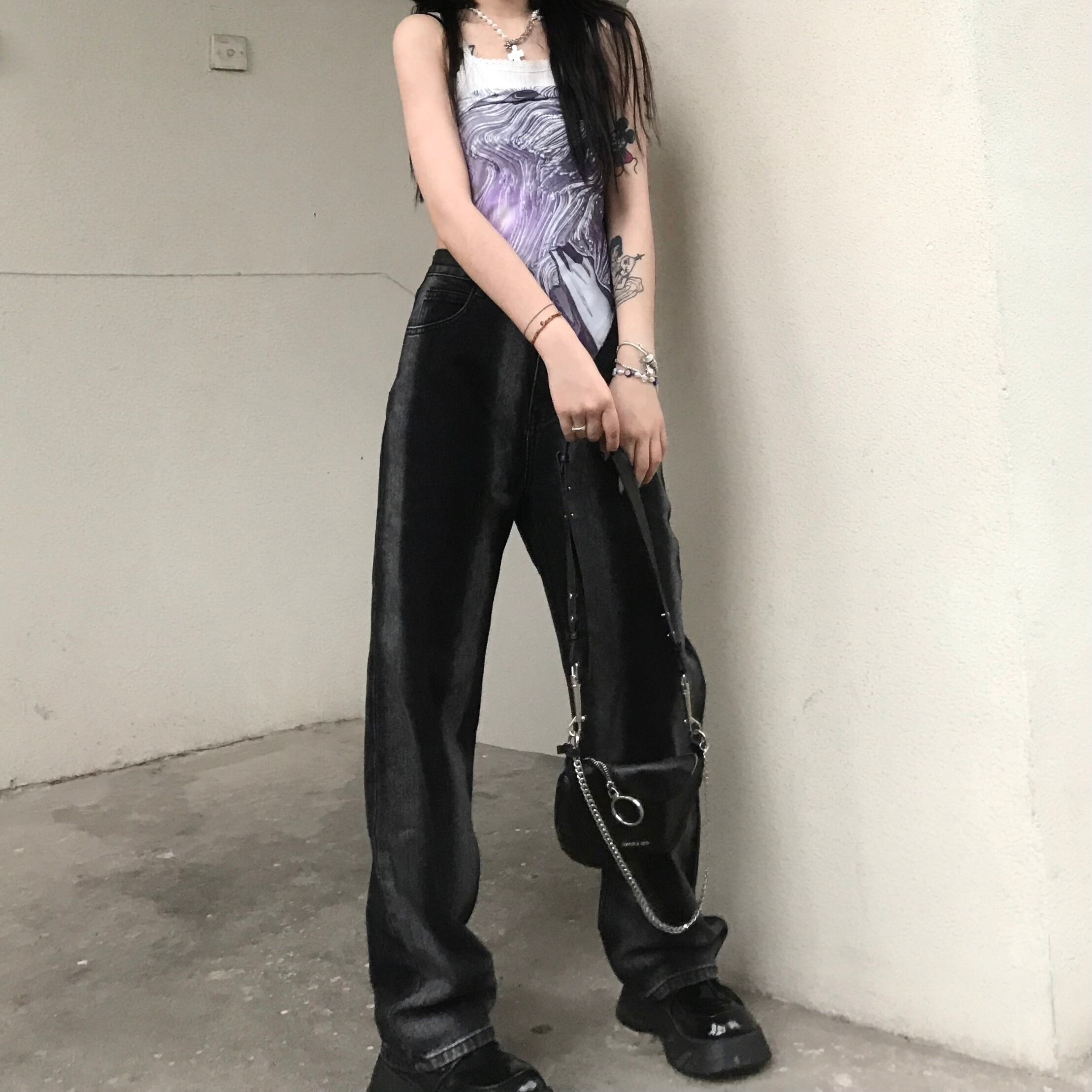 夏服トレンドカラーワイドレッグパンツ ハイウェストウェスト薄手ルーズ 夏物 ワイドパンツ ウエスト デーモン15789195662