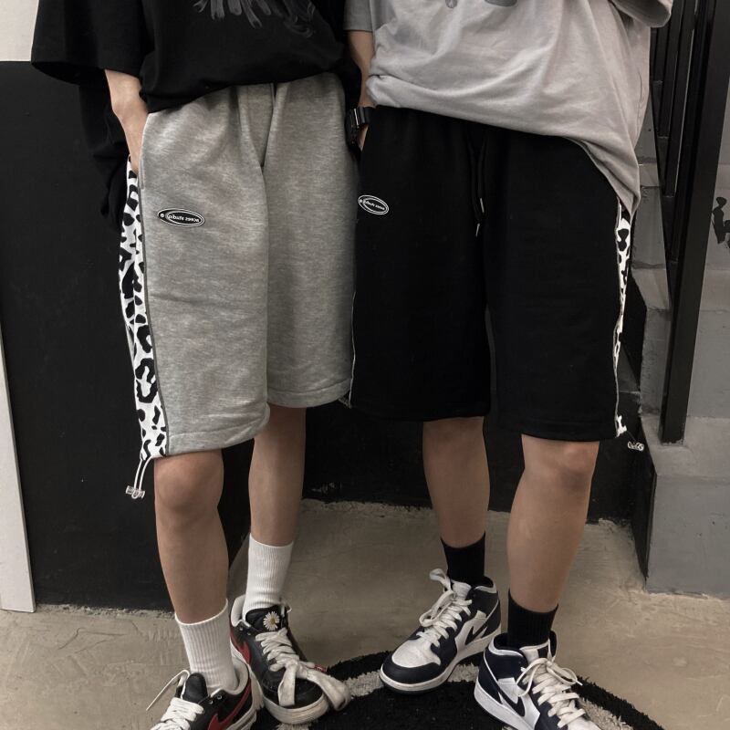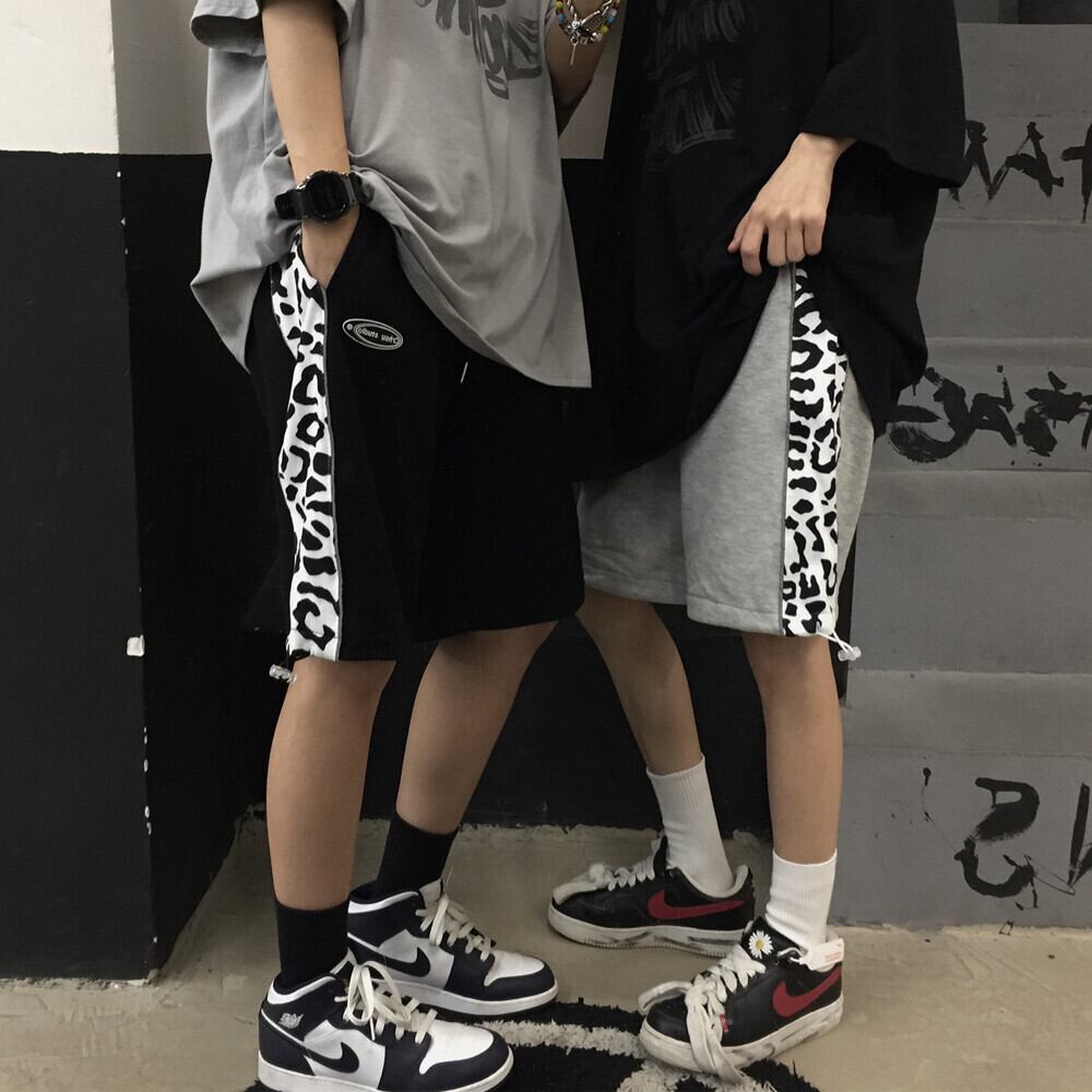 トレンドレオパードプリント柄ショーツ ルーズパンツ メンズレディース レッド 刺繍 CHIL89817622079