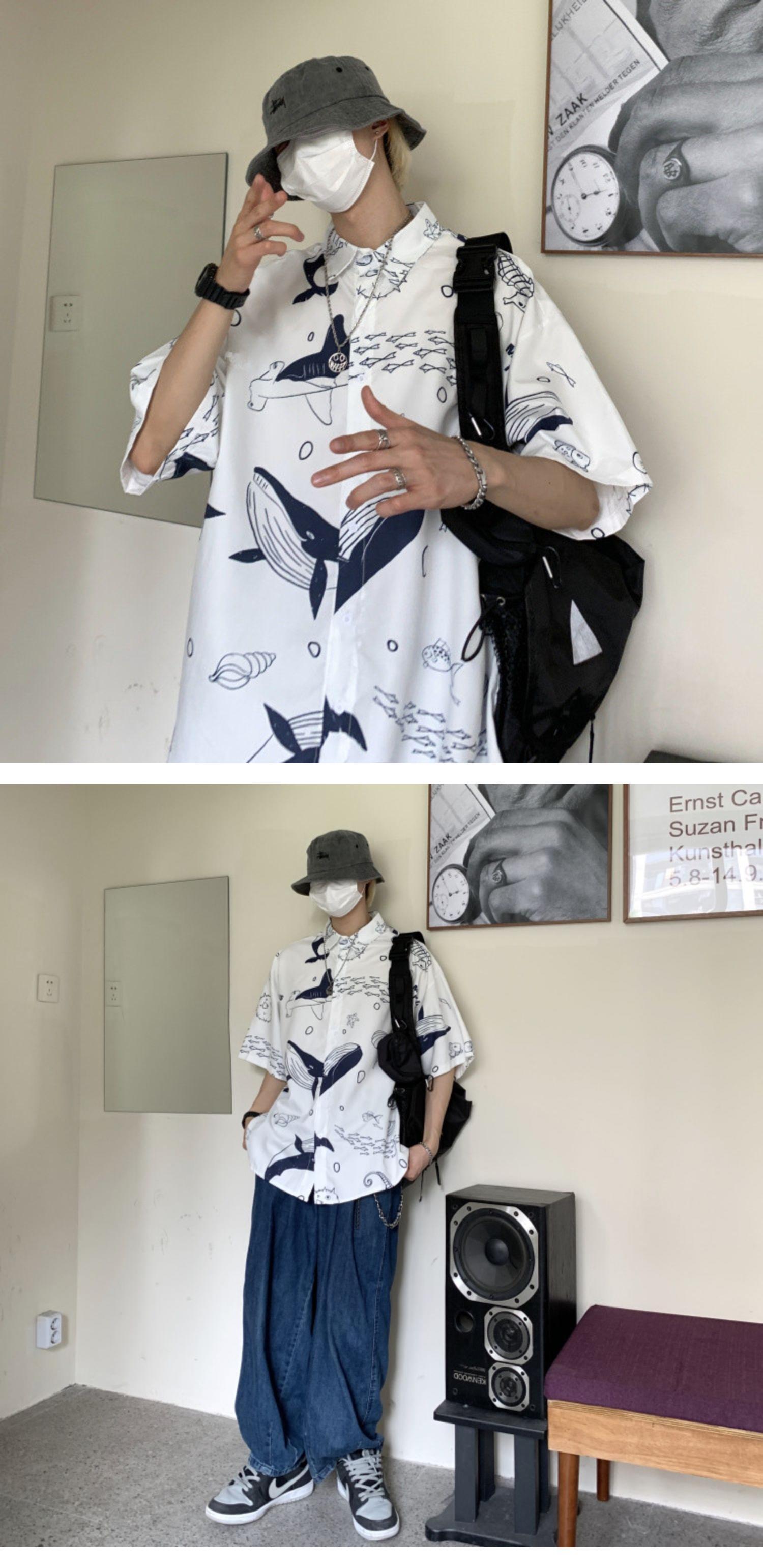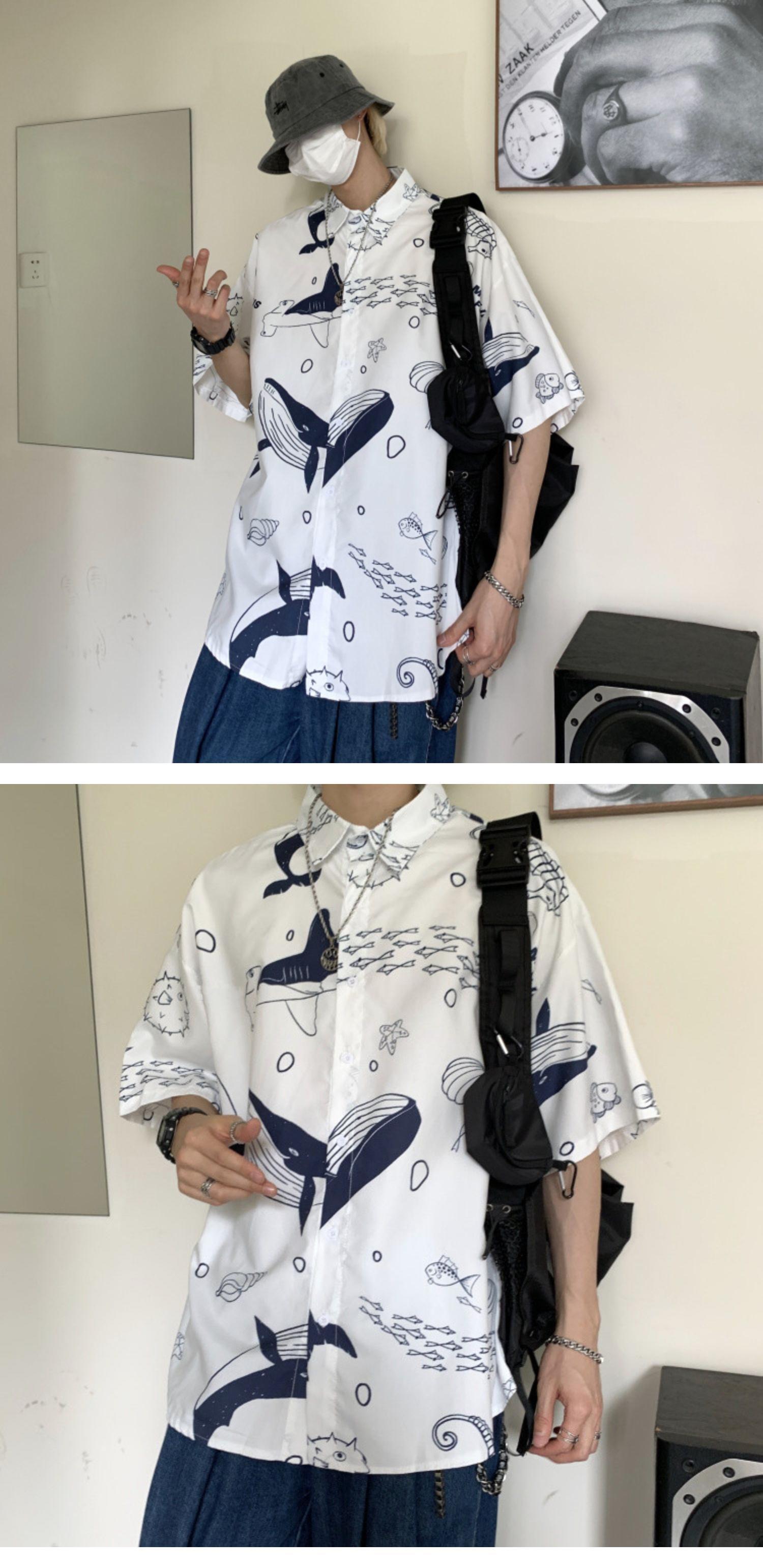 シャツ 夏服トレンドスタイルスタンダードプリントルーズレディース レトロ 夏物 ボーイズ デーモン5605057604