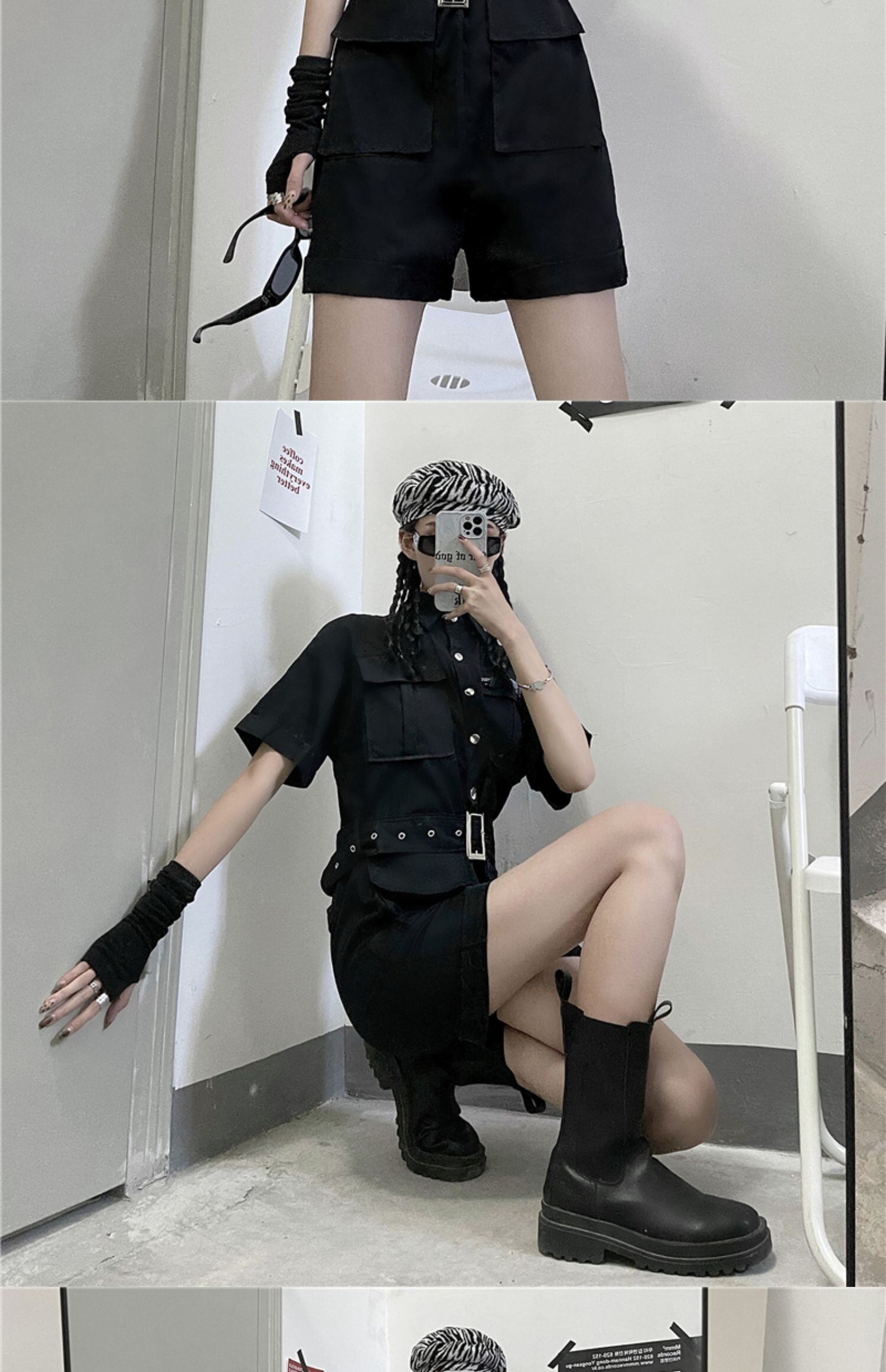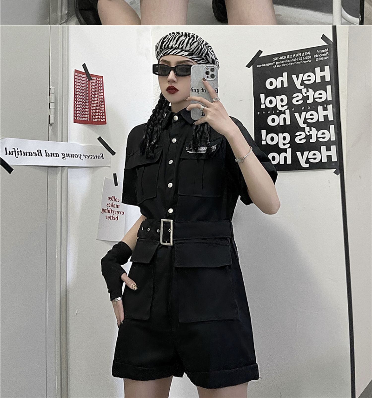 ジャンプスーツ オールインワン レディース夏服トレンドルーズブラック薄手 ストリート 夏物 デーモン5801117963