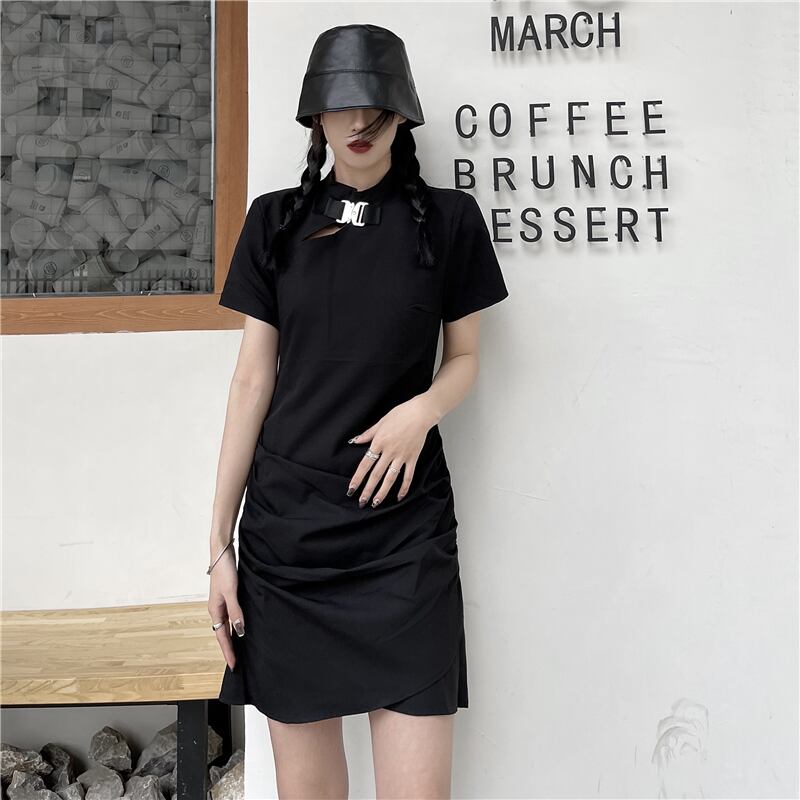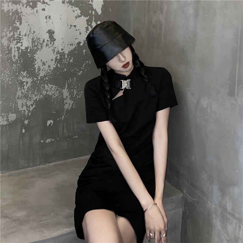 スタイルワンピースレディース夏服韓国ファッショントレンドスタンダードブラック薄手スカート レトロ 夏物 デーモン27736007572