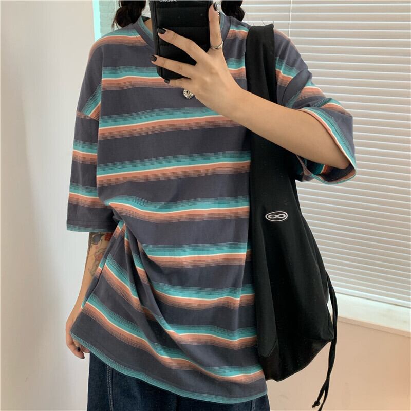 ストライプTシャツトレンドスタンダードスタイルルーズ レトロ CHIL39105776483