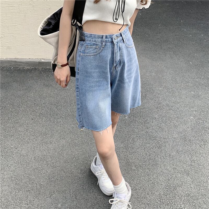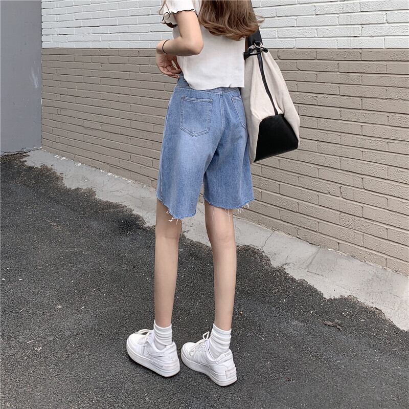 夏服韓国ファッション薄手ブルーハイウェストウェストルーズショーツ レディース 夏物 ブルマー ポケット多め マルチポケット スタイル ウエスト CHIL92444146380