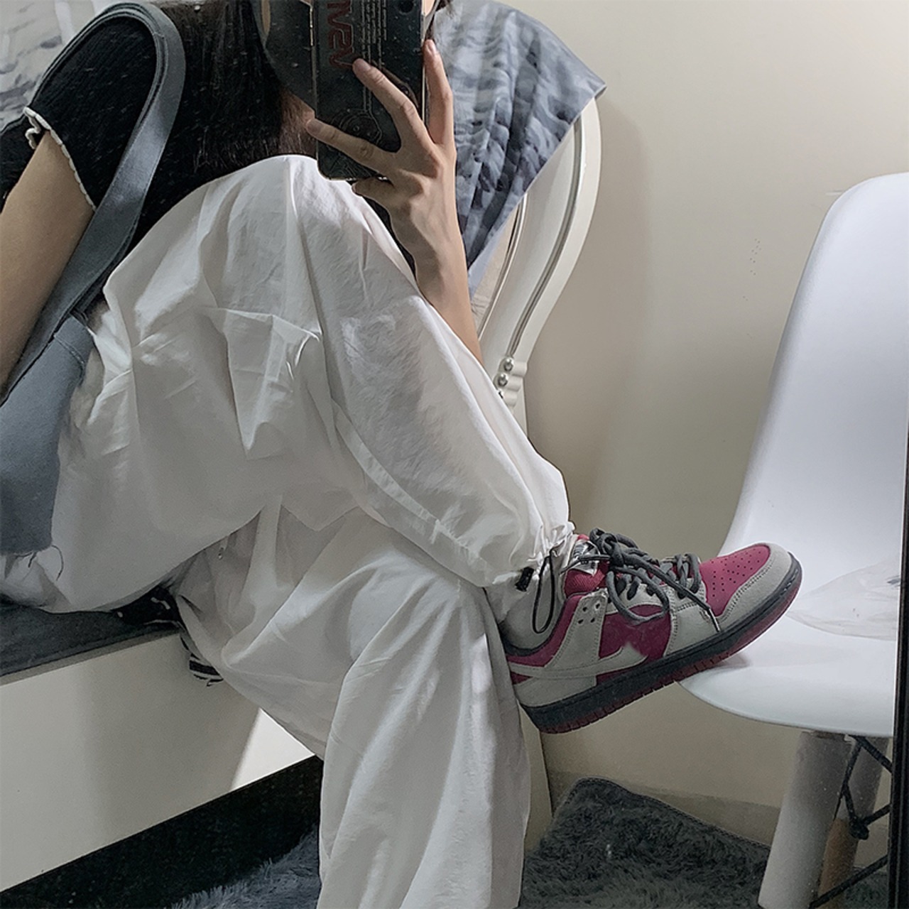 ホワイトパンツ レディーストレンドカジュアルプリーツパンツワイドレッグギャザー ワイドパンツ ポケット多め マルチポケット CHIL69287007223